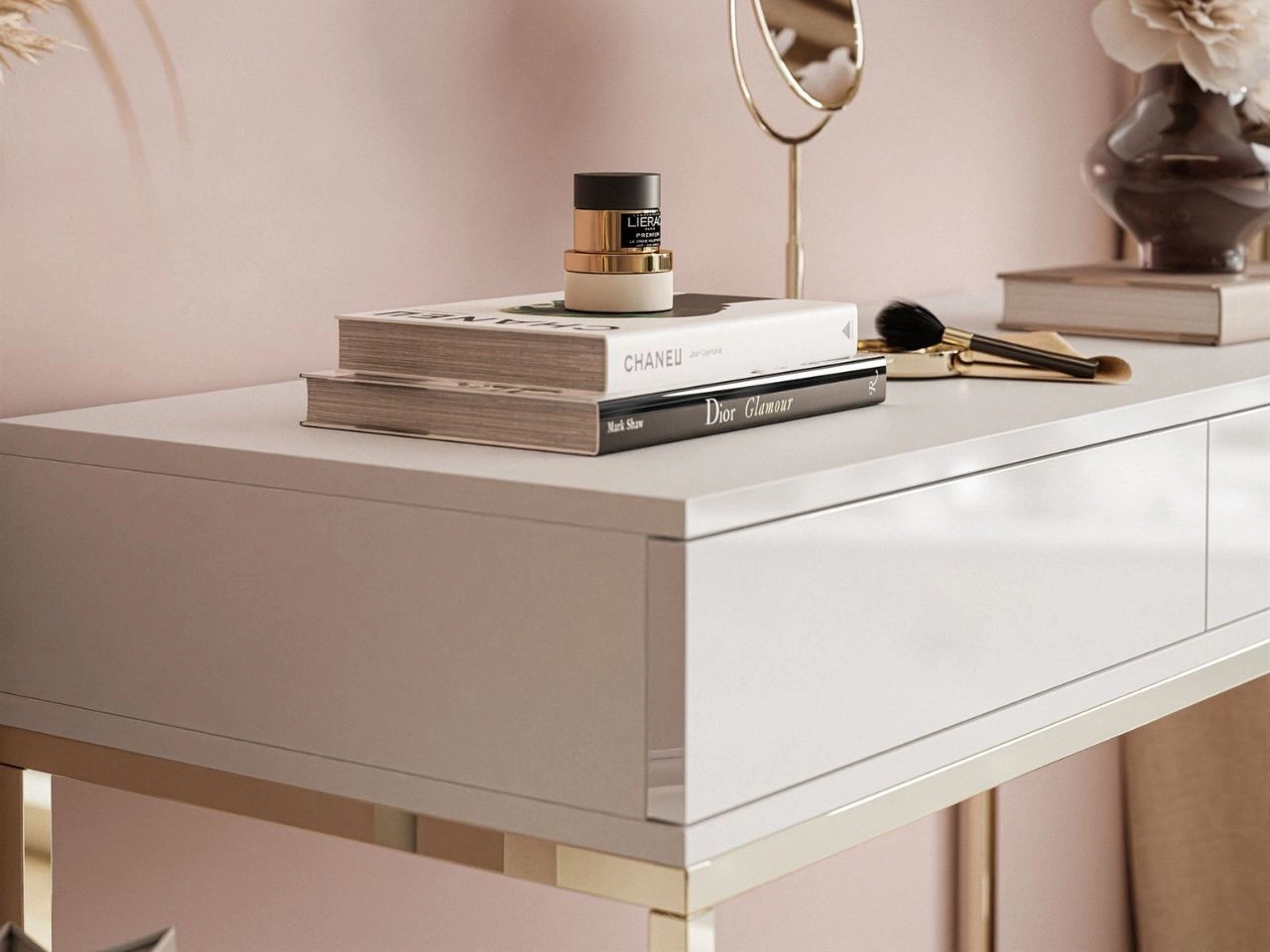 Konsolentisch mit Schubladen und goldenem Gestell im Glamour-Stil Brisa Weiß Hochglanz