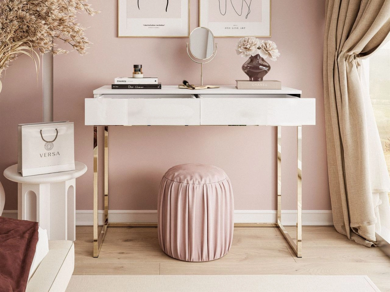 Die Möbelkollektion Brisa bietet vielfältige Personalisierungsmöglichkeiten. Hier finden Sie Konsolen, Nachttische und Schminktische, die dank unterschiedlicher Front- und Gestellfarben sowie verschiedener Öffnungssysteme perfekt in moderne, glamouröse oder sogar loftartige Einrichtungen passen.