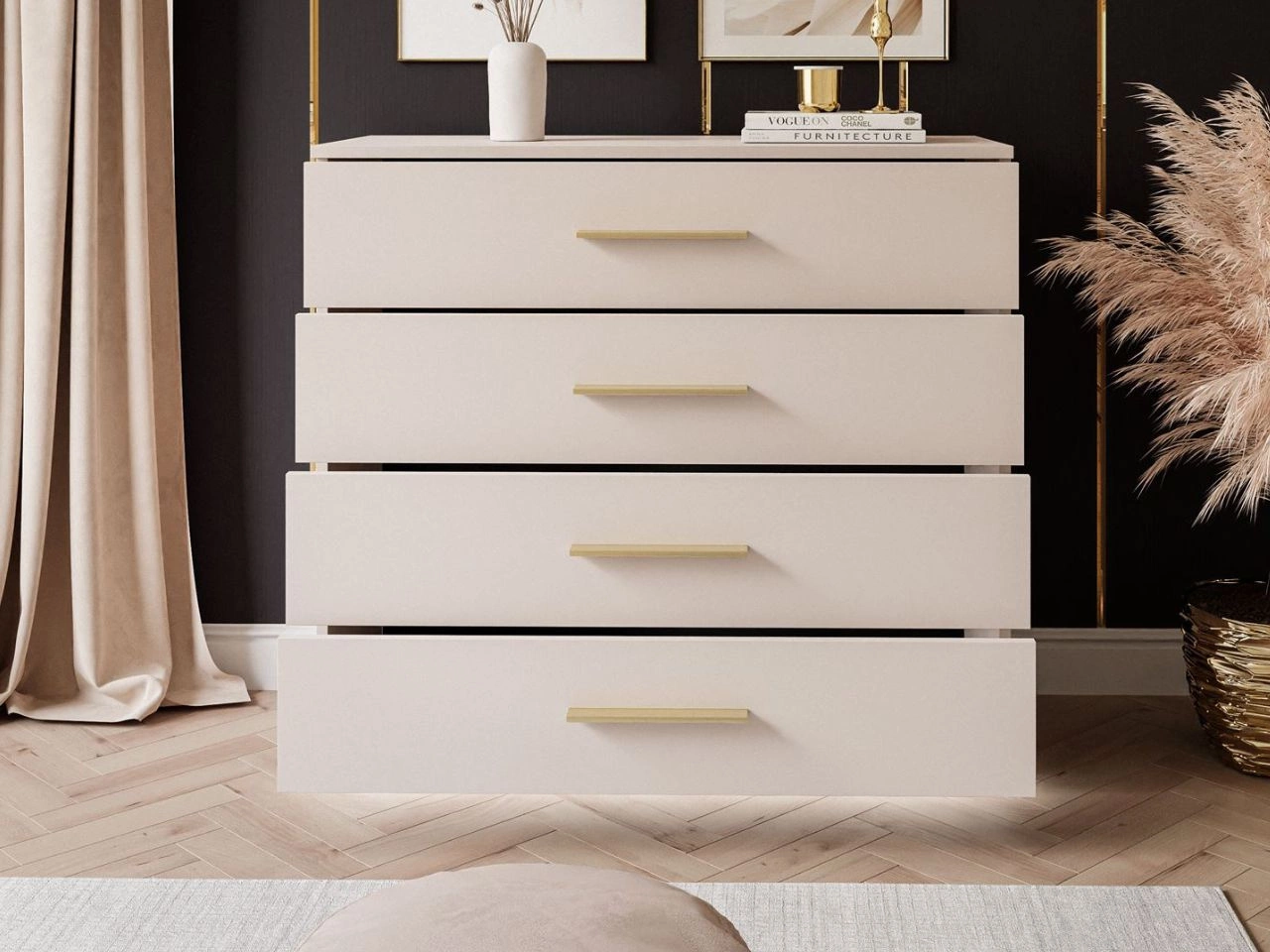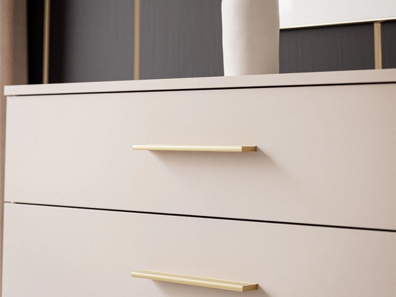 Suchen Sie ein praktisches und stilvolles Möbelstück für Ihr Zuhause? Kaschmir Kommode Nuveo ist die ideale Lösung für Wohnzimmer, Schlafzimmer, Flur oder Jugendzimmer. Ihre moderne Form und die matte Ausführung vergrößern den Raum optisch und verleihen dem Interieur Leichtigkeit und Eleganz