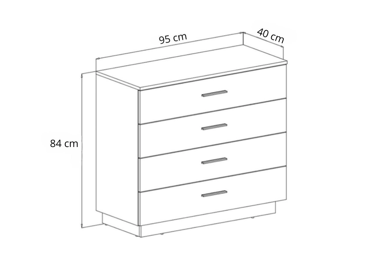 Kommode ist mit vier geräumigen Schubladen ausgestattet, die das Verstauen von Kleidung, Dokumenten, Accessoires oder kleinen Gegenständen erleichtern. Die breite Ablagefläche eignet sich perfekt für Dekorationen, Pflanzen oder Familienfotos.