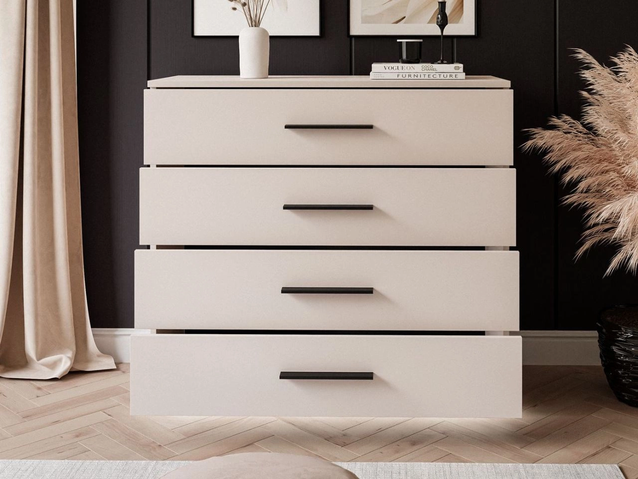 Suchen Sie ein praktisches und stilvolles Möbelstück für Ihr Zuhause? Kaschmir Kommode Nuveo ist die ideale Lösung für Wohnzimmer, Schlafzimmer, Flur oder Jugendzimmer. Ihre moderne Form und die matte Ausführung vergrößern den Raum optisch und verleihen dem Interieur Leichtigkeit und Eleganz