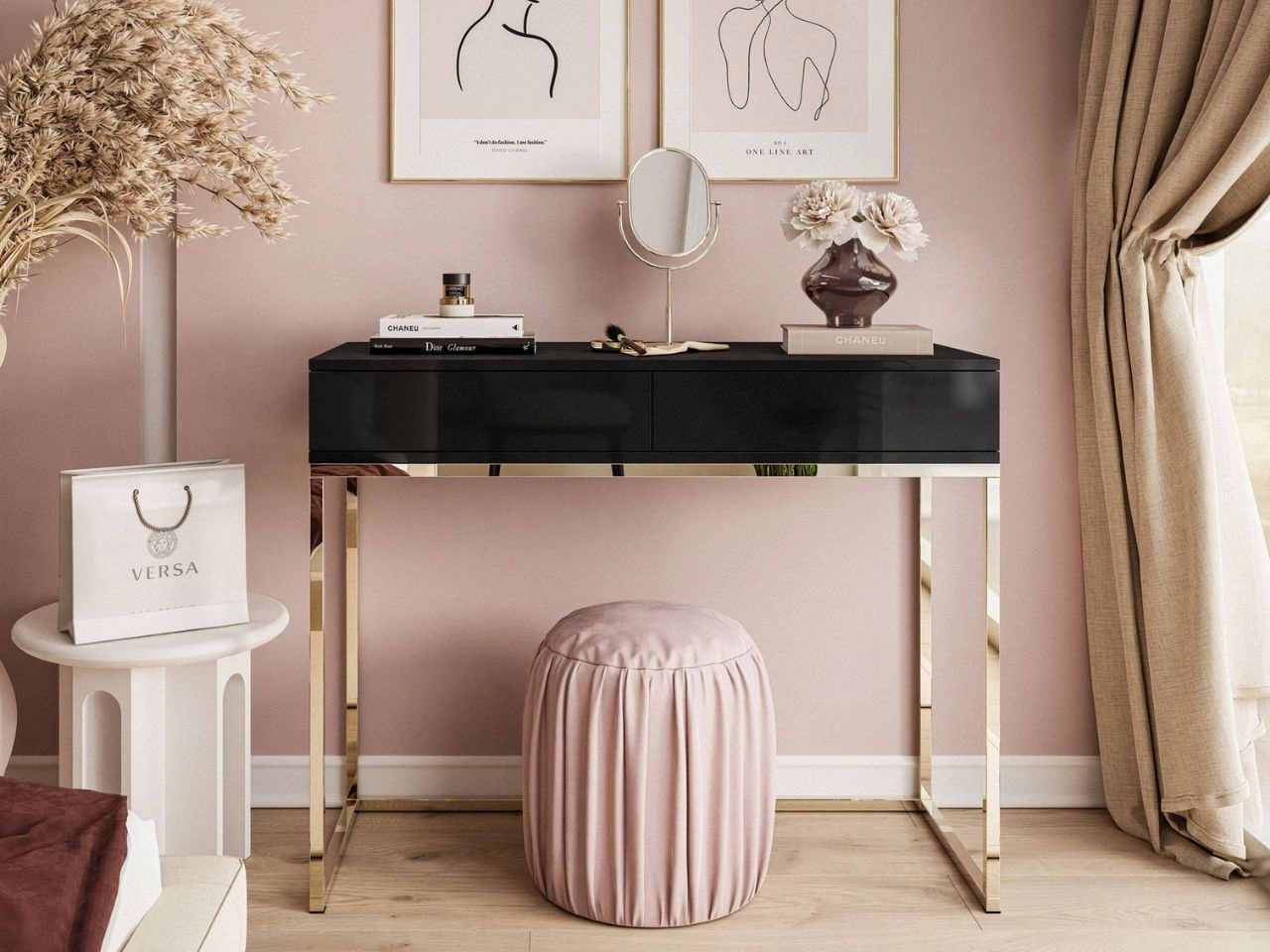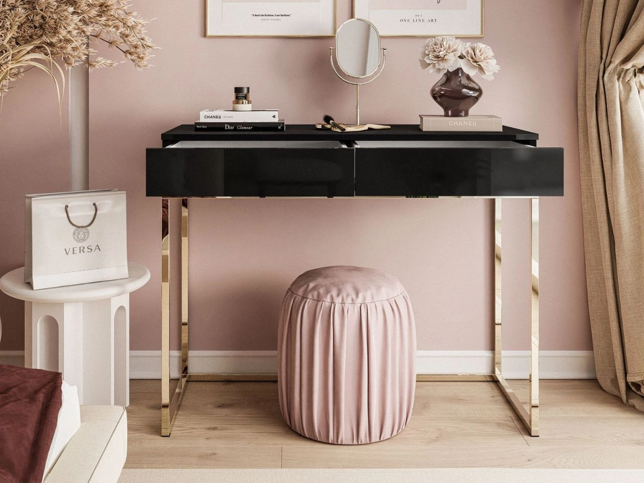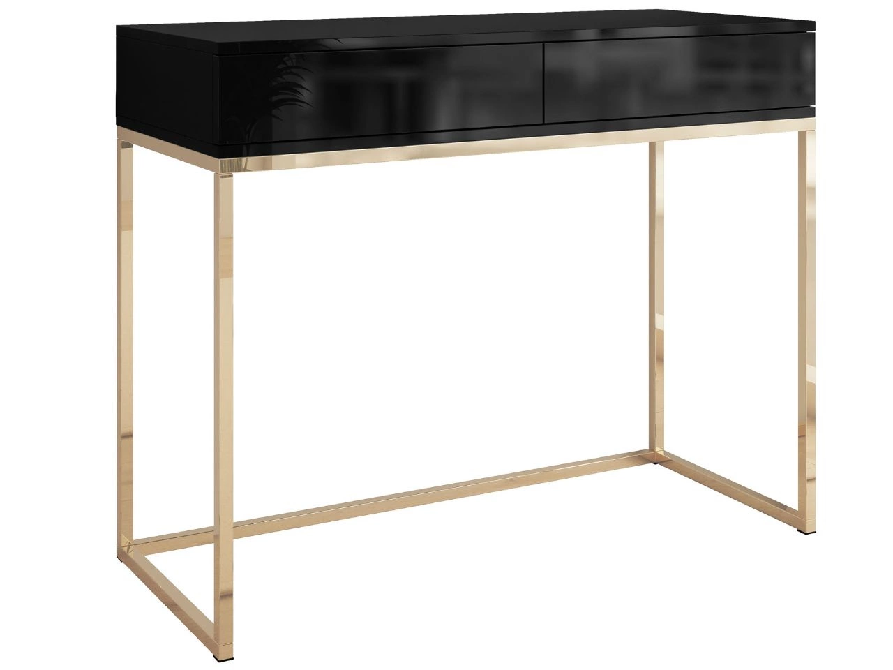 Konsolentisch mit Schubladen und goldenem Gestell im Glamour-Stil Brisa Schwarz Hochglanz