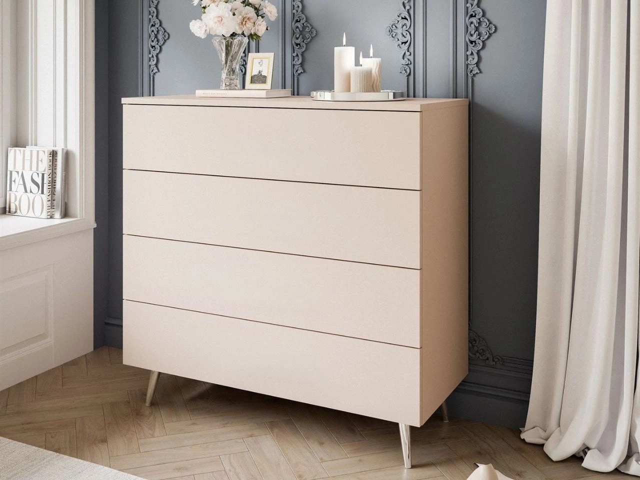 Suchen Sie ein praktisches und stilvolles Möbelstück für Ihr Zuhause? Kaschmir Kommode Nuveo ist die ideale Lösung für Wohnzimmer, Schlafzimmer, Flur oder Jugendzimmer. Ihre moderne Form und die matte Ausführung vergrößern den Raum optisch und verleihen dem Interieur Leichtigkeit und Eleganz