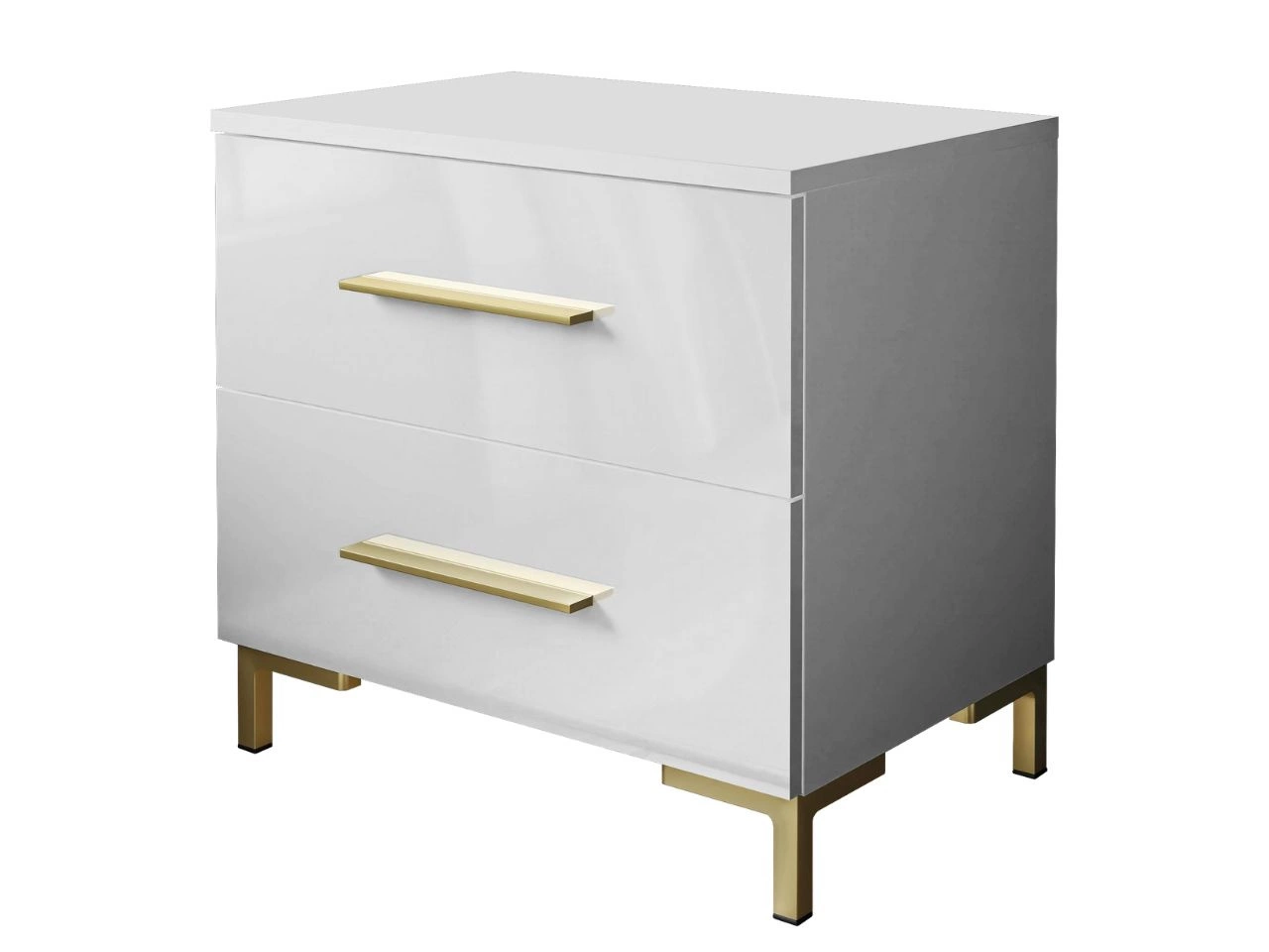 Nachttisch mit Schubladen auf Goldenen Beinen Nuveo Weiß Hochglanz