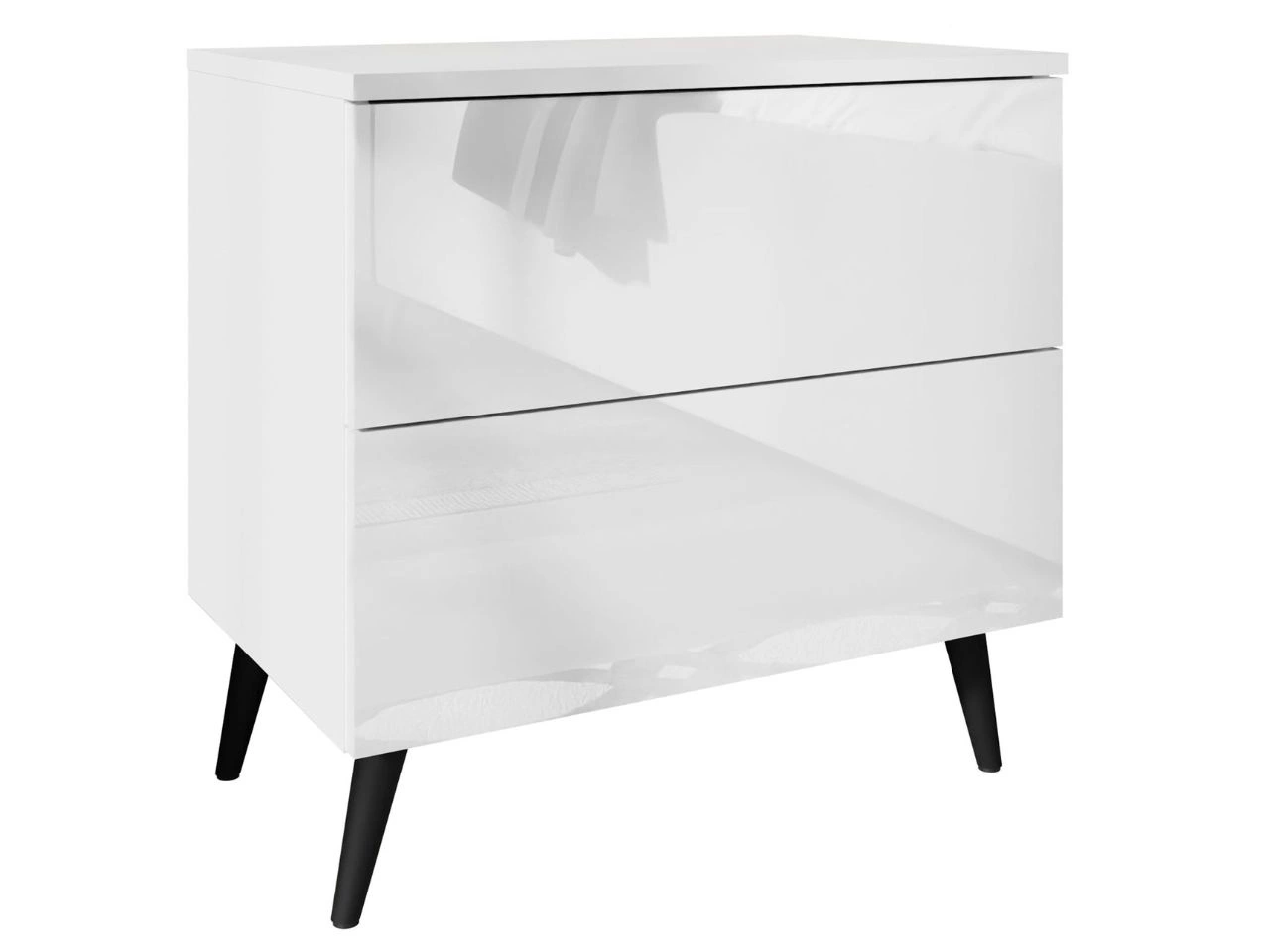 Nachttisch mit Schubladen auf Schwarzen Metallbeinen Nuveo Weiß Hochglanz