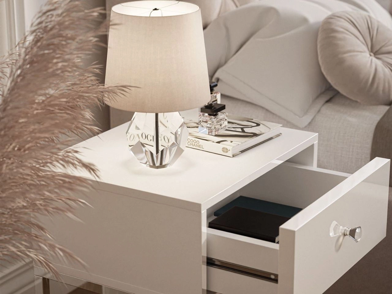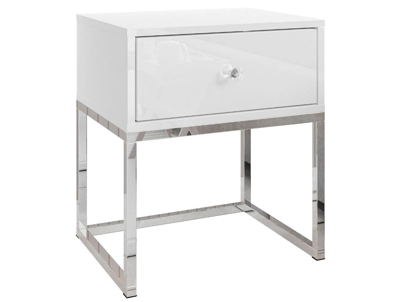 Nachttisch Glamour mit Schublade und silbernen Gestell Brisa Weiß Hochglanz