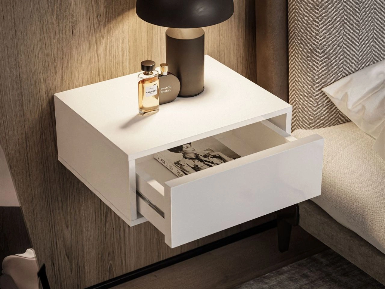 Du ziehst an: Hängender Nachttisch mit Schublade Brisa Weiß Hochglanz