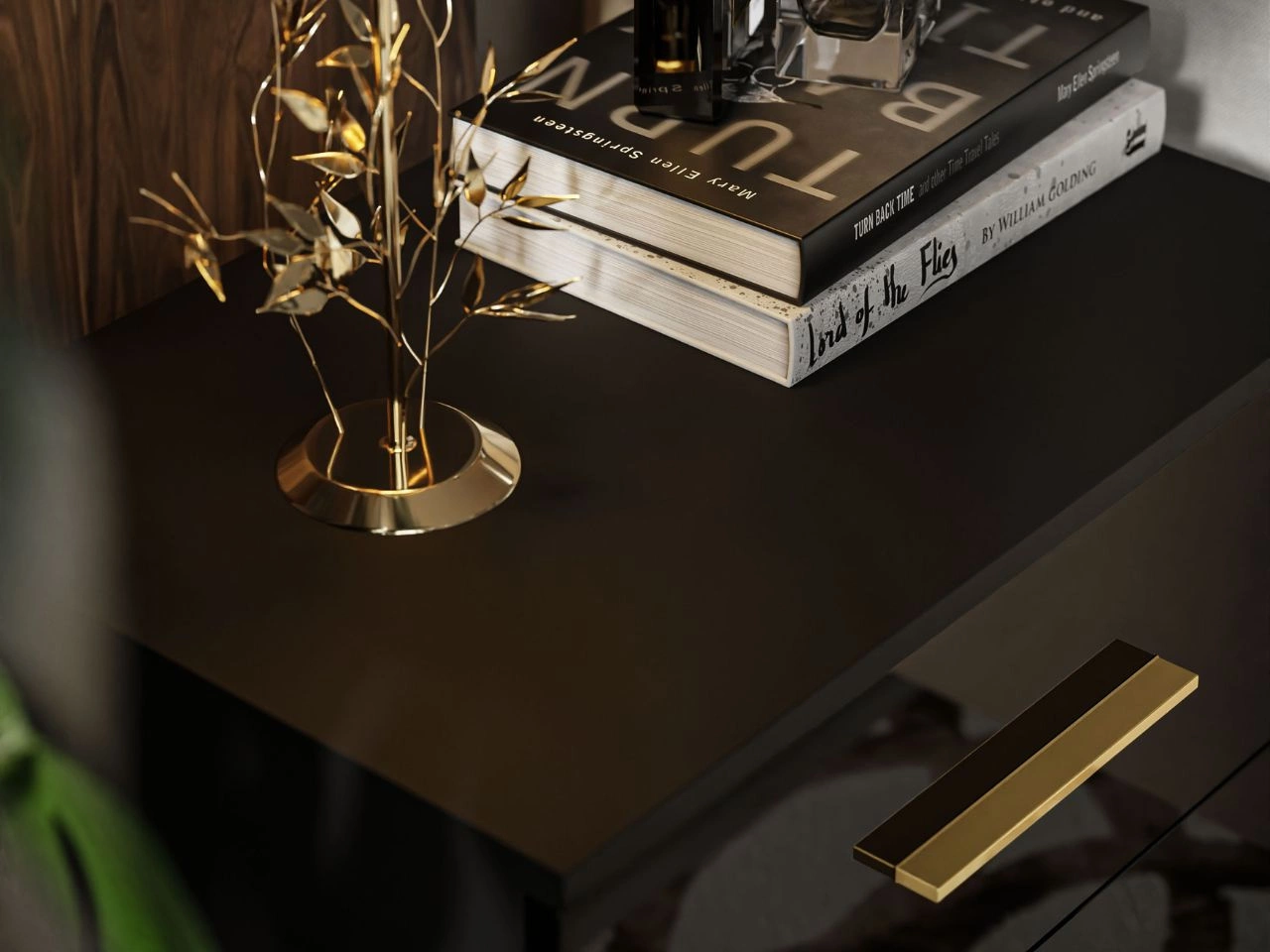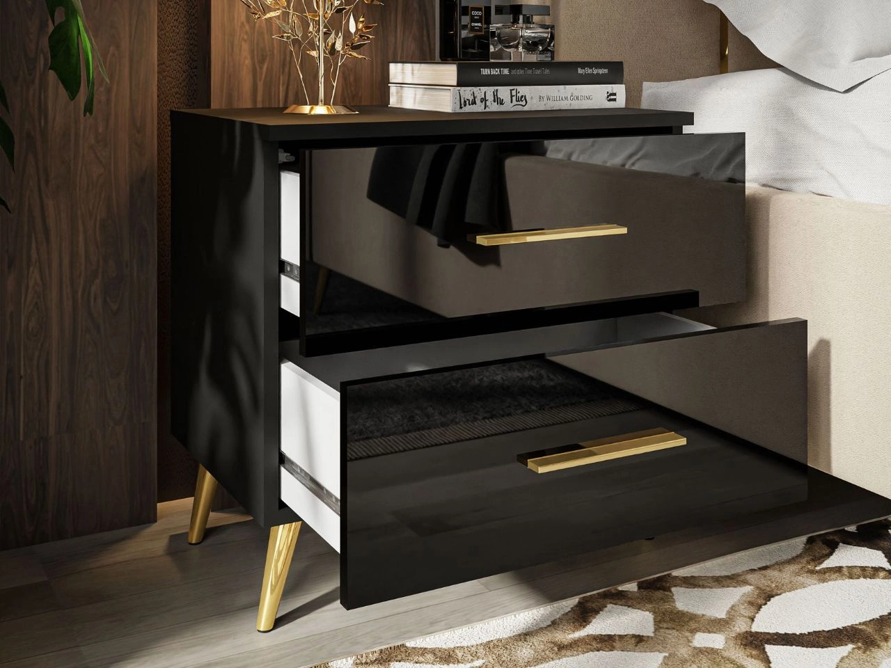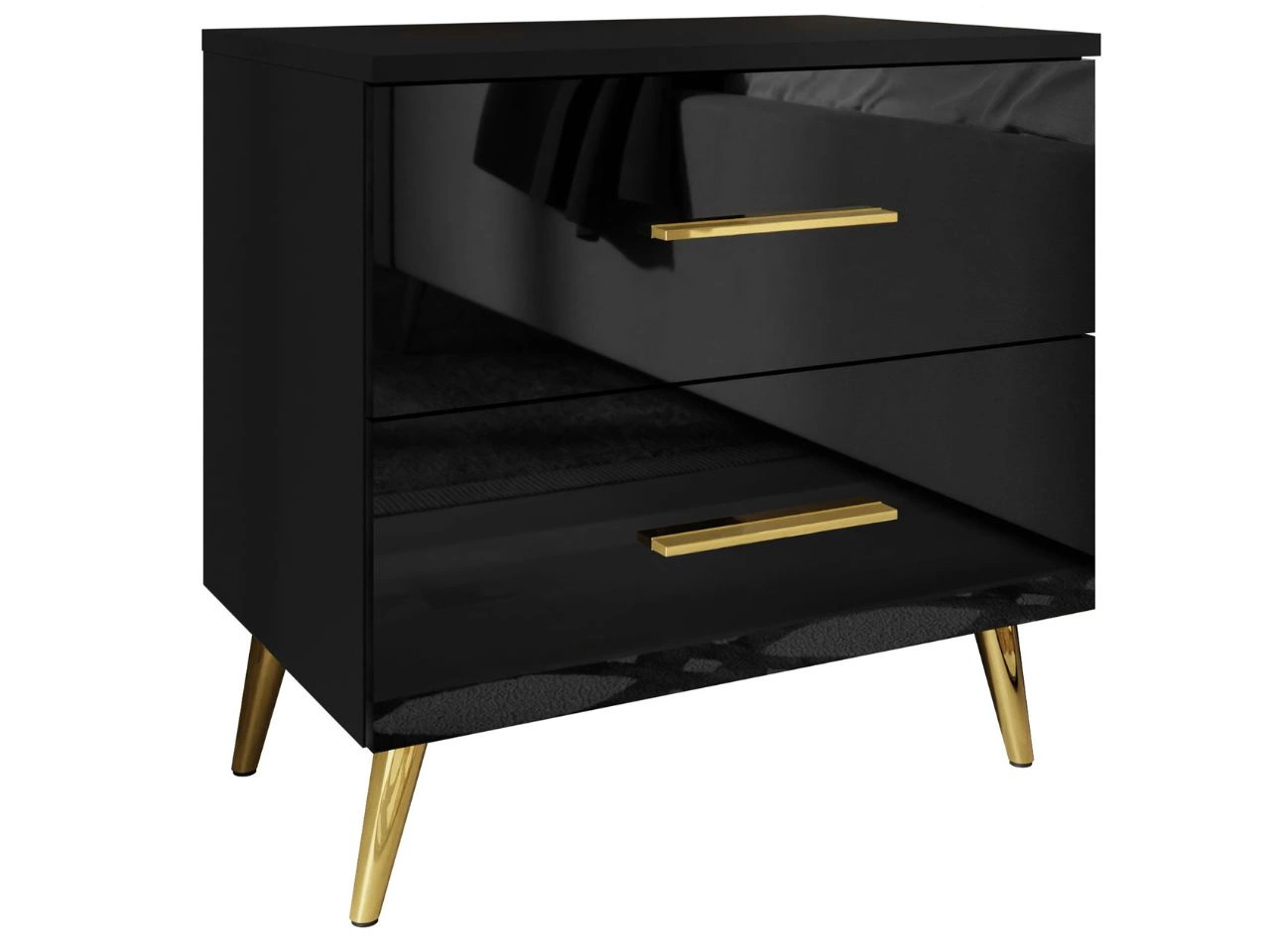Nachttisch mit Schubladen auf Goldenen Metallbeinen Nuveo Schwarz Hochglanz