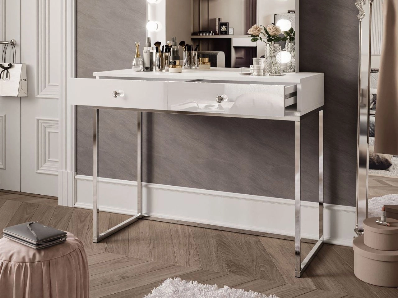 Schminktische werden nach und nach zu einem unverzichtbaren Element der Schlafzimmerausstattung – sie bieten einen passenden und komfortablen Bereich, in dem die Frau ihr Erscheinungsbild in einer sehr intimen Atmosphäre pflegen kann. In diesem Zusammenhang möchten wir Ihnen den mit LED-Beleuchtung ausgestatteten Schminktisch Brisa vorstellen – ein Möbelstück mit schönem Design und praktischen Lösungen.