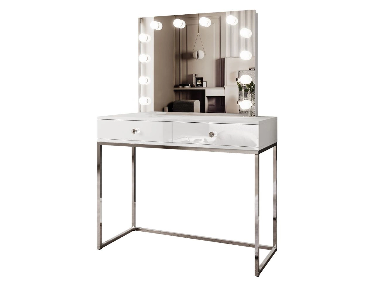 Schminktisch  Glamour mit Schubladen, Spiegel und LED-Beleuchtung Brisa Weiß Hochglanz