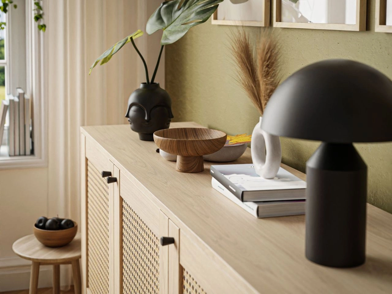 Schätzen Sie außergewöhnliches Design und praktische Lösungen? Gleichzeitig möchten Sie nicht auf klassische Einrichtungsmuster verzichten? Dann sind Stile wie Boho oder Wiener Geflecht genau das Richtige für Sie. Die Kommode Bellance ist ein perfektes Beispiel dafür, wie Tradition auf Moderne trifft. Dieses Möbelstück ist äußerst vielseitig – es passt nicht nur ins Wohnzimmer, sondern auch ins Schlafzimmer oder in den Flur. Ganz gleich, wo es steht – es wird garantiert zum Blickfang.