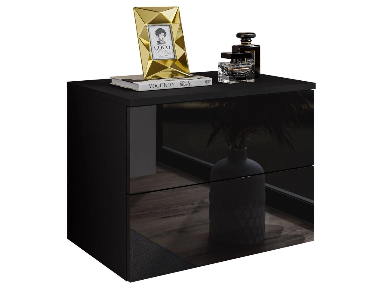Hängender Nachttisch mit zwei Schubladen Nuveo Schwarz Hochglanz