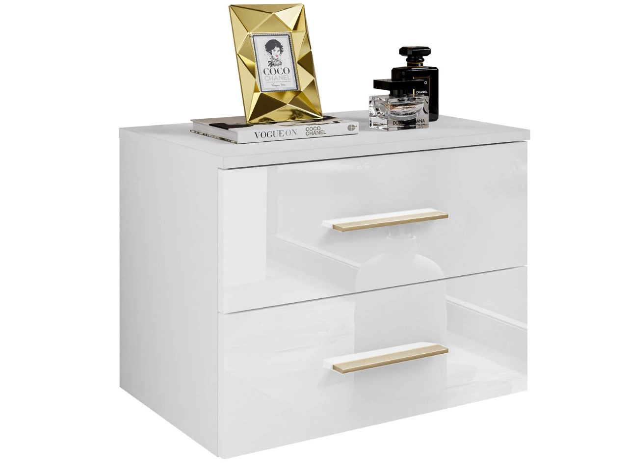 Hängender Nachttisch mit zwei Schubladen Nuveo Weiß Hochglanz