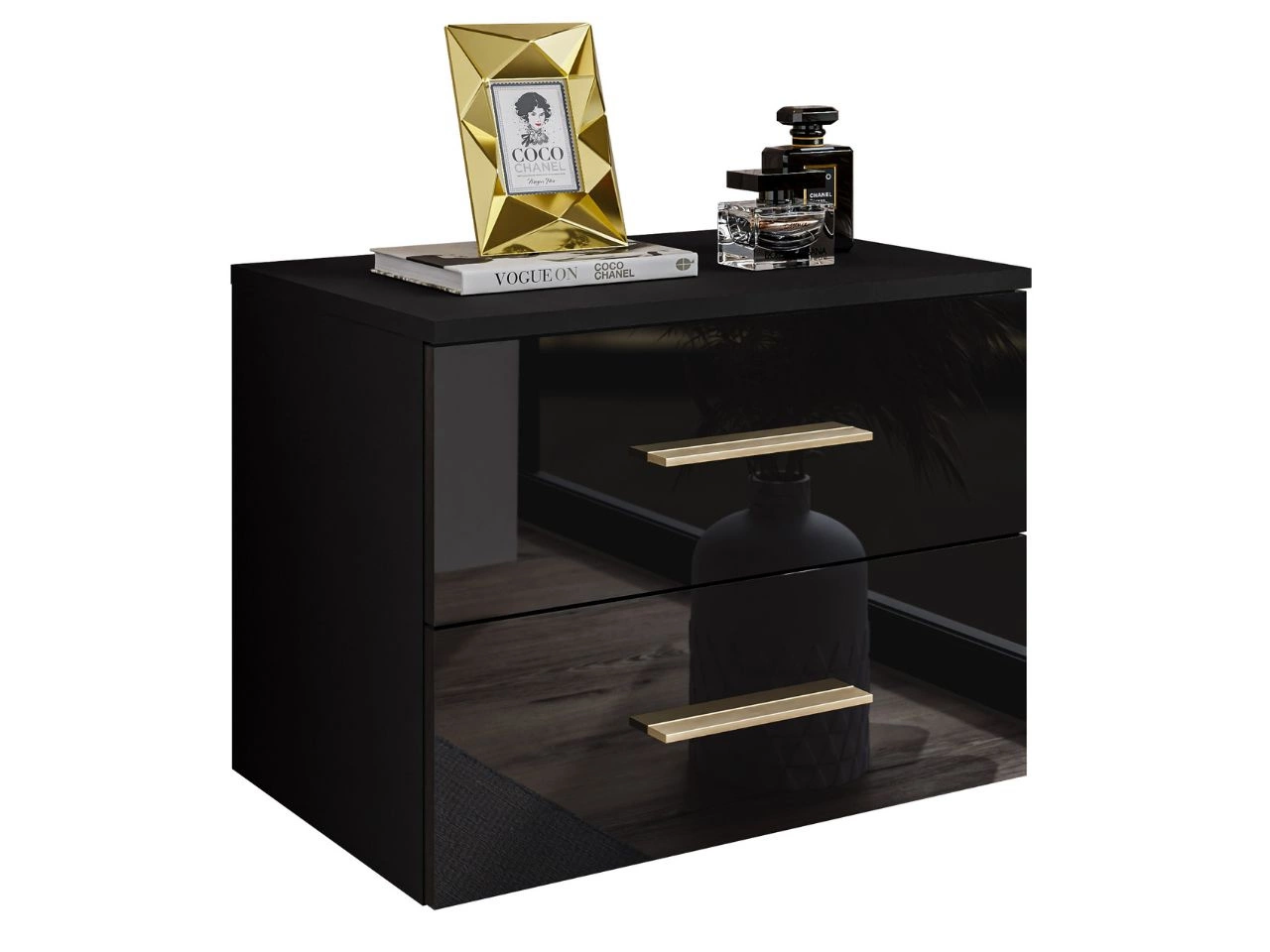 Hängender Nachttisch mit zwei Schubladen Nuveo Schwarz Hochglanz