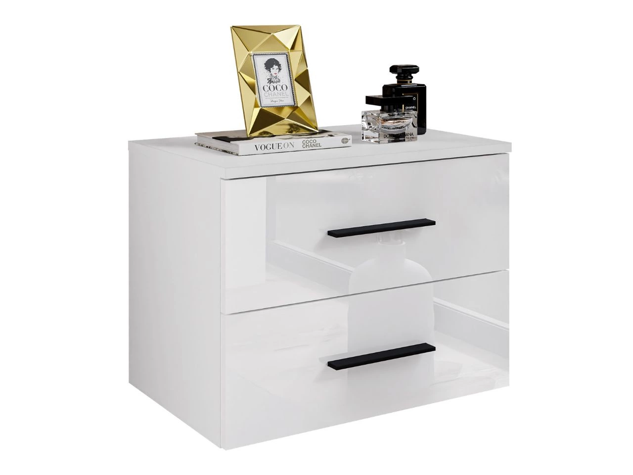 Hängender Nachttisch mit zwei Schubladen Nuveo Weiß Hochglanz