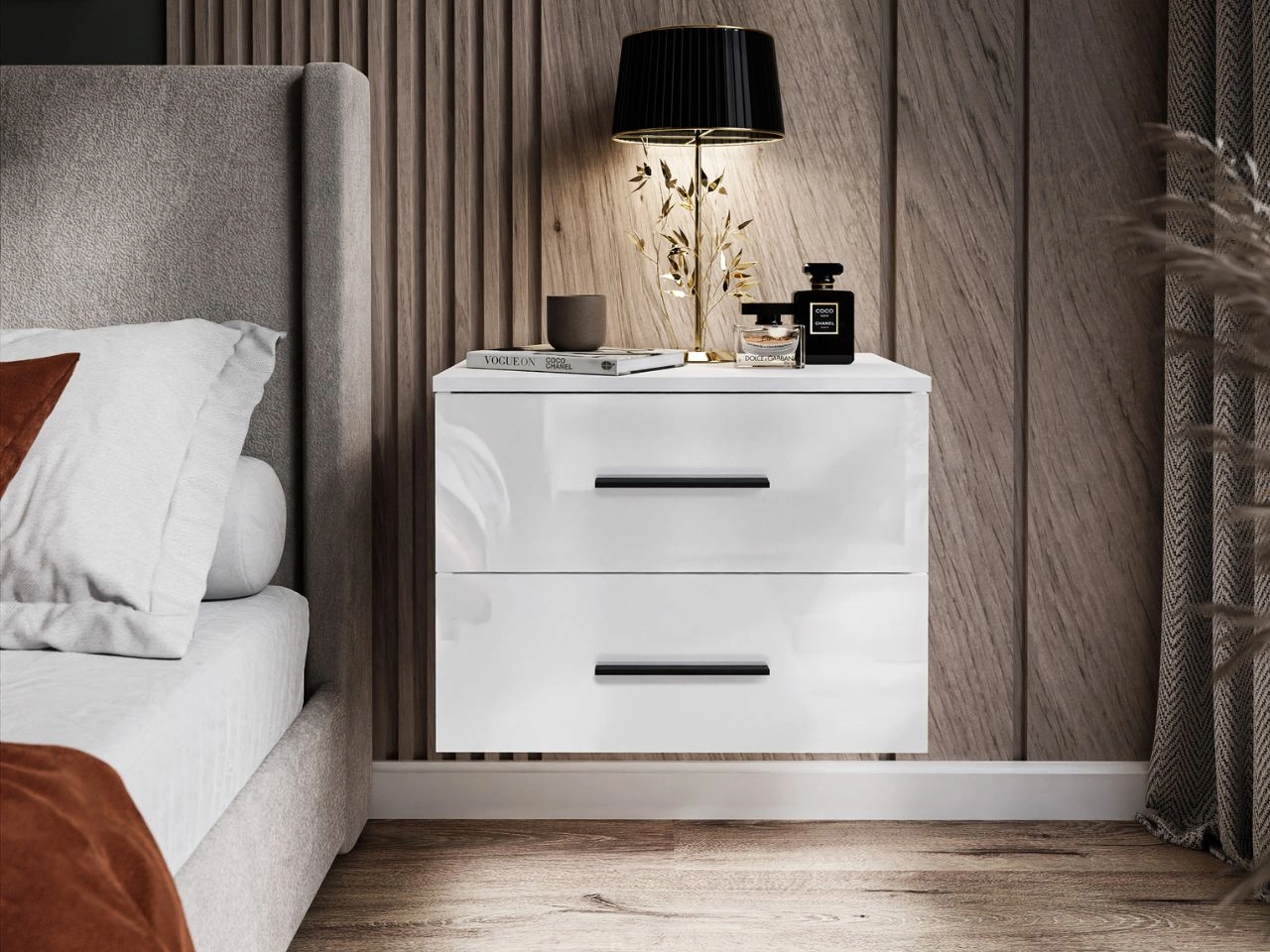 Hängender Nachttisch mit zwei Schubladen Nuveo Weiß Hochglanz