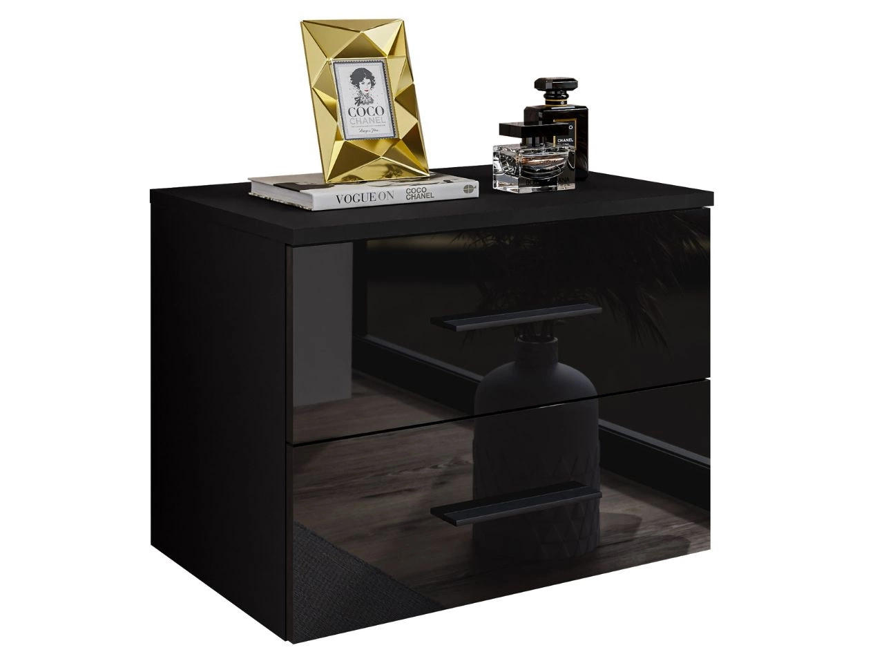 Hängender Nachttisch mit zwei Schubladen Nuveo Schwarz Hochglanz