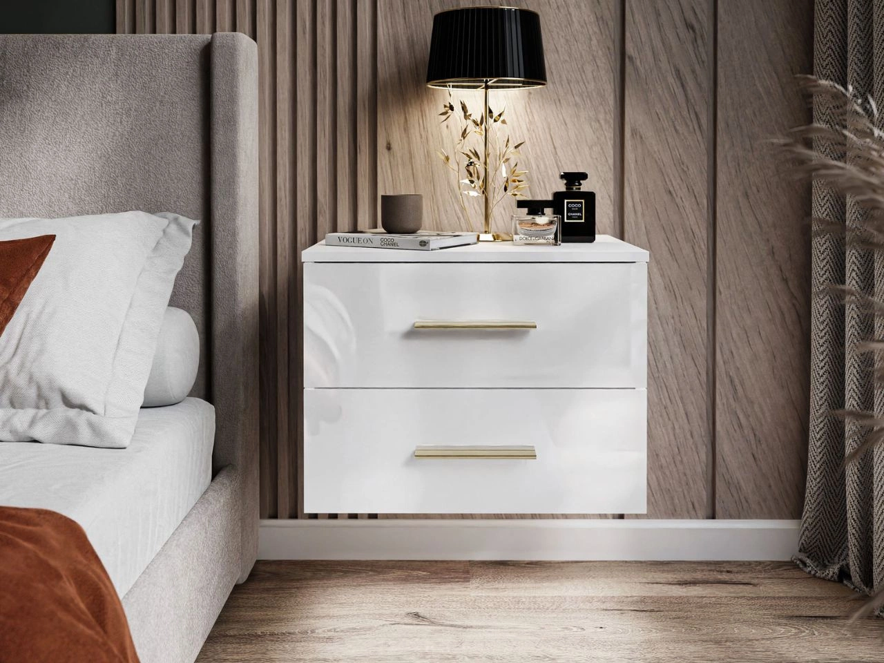 Hängender Nachttisch mit zwei Schubladen Nuveo Weiß Hochglanz