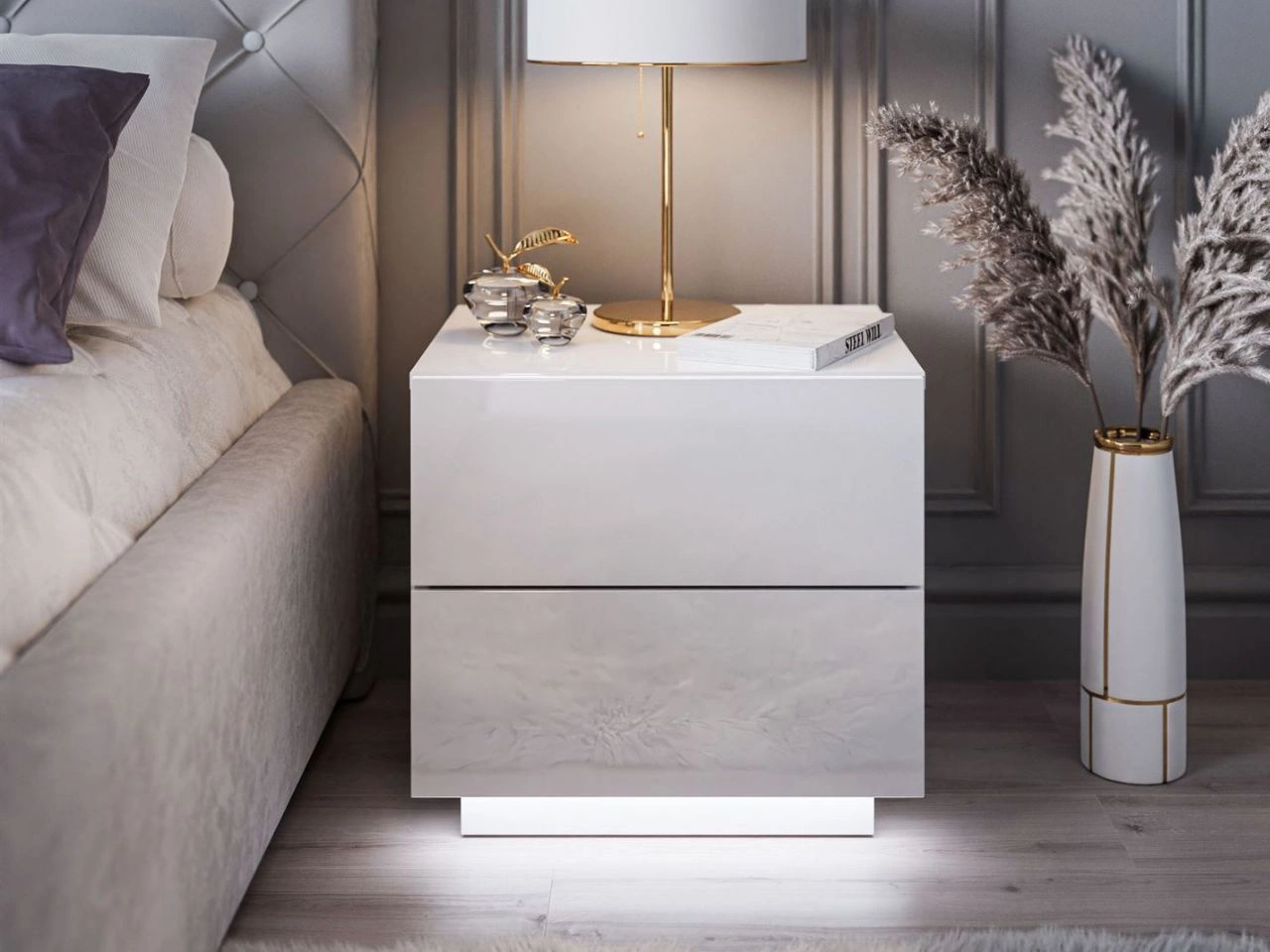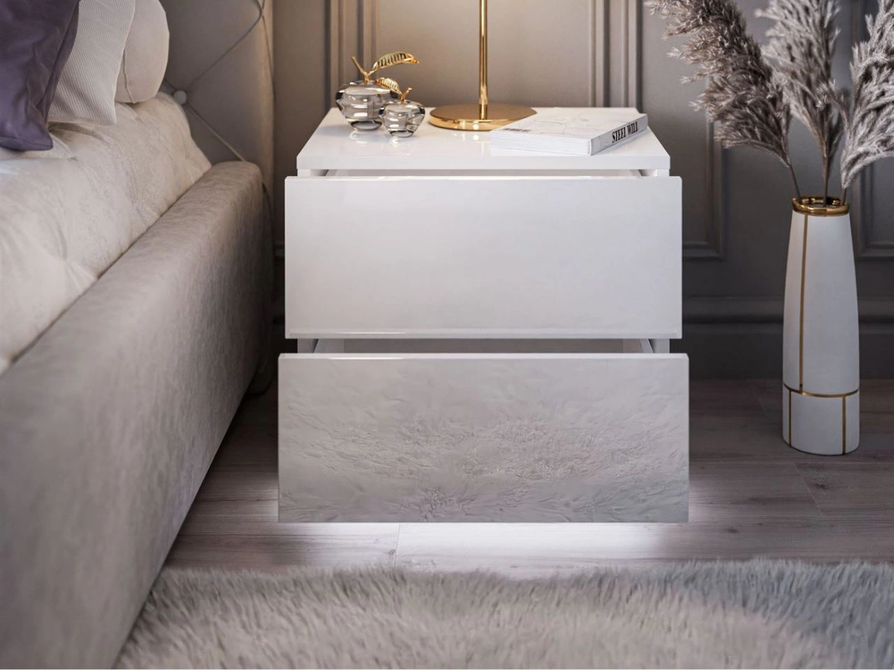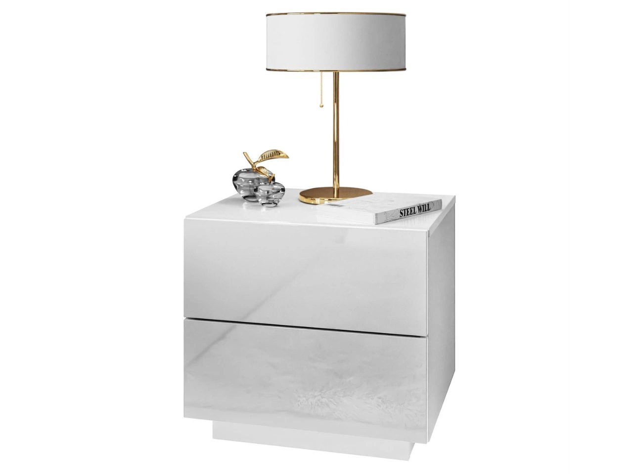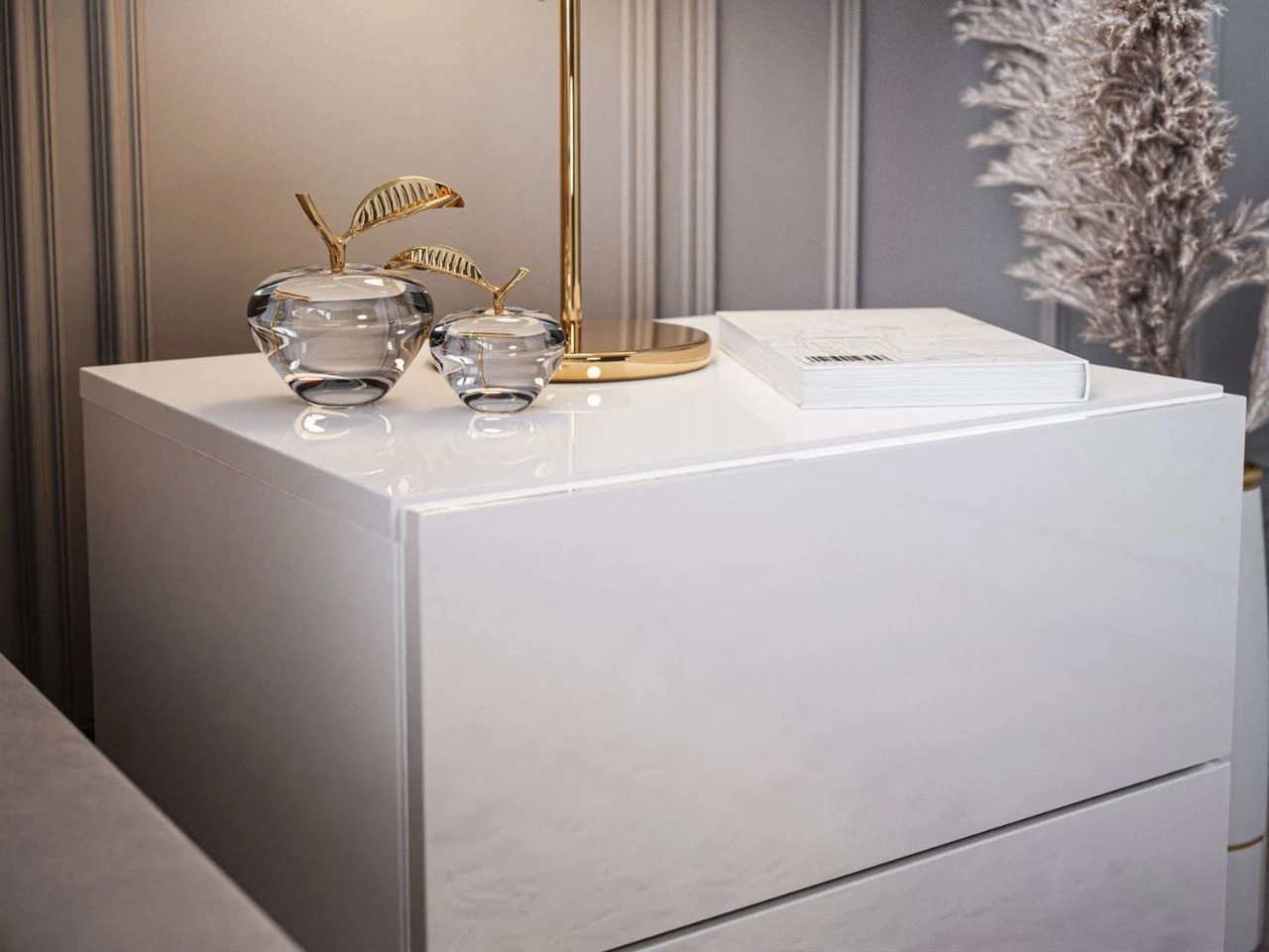 Nachttisch mit zwei Schubladen Nuveo Lux Weiß Hochglanz