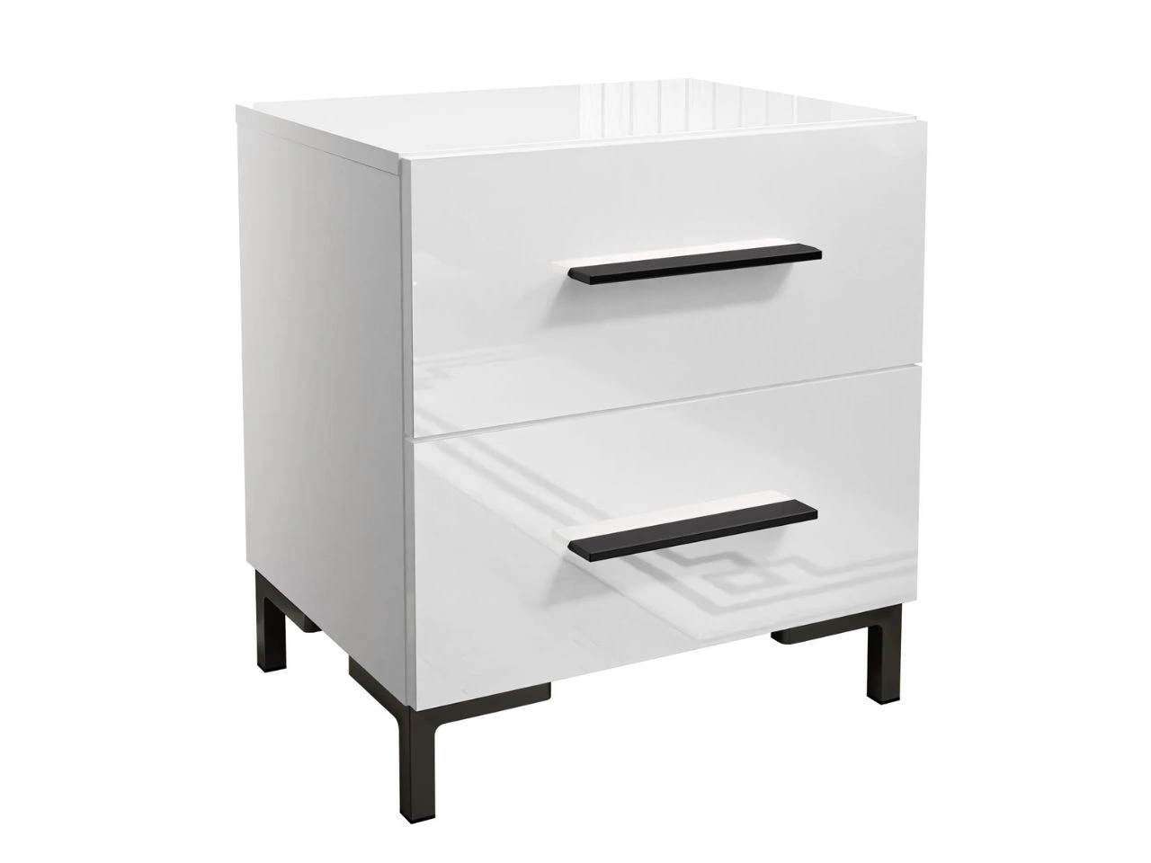 Nachttisch mit zwei Schubladen auf Schwarzen Goldenen Nuveo Lux Weiß Hochglanz