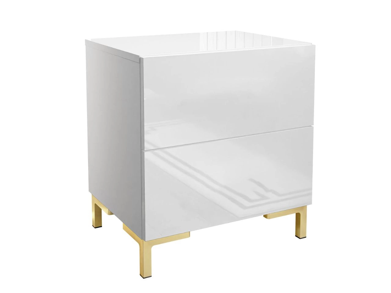 Nachttisch mit zwei Schubladen auf Goldenen Beinen Nuveo Lux Weiß Hochglanz