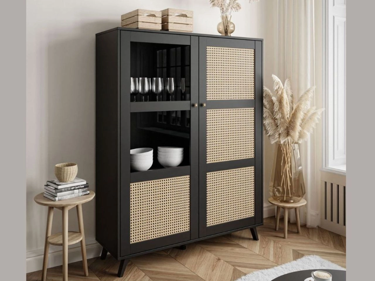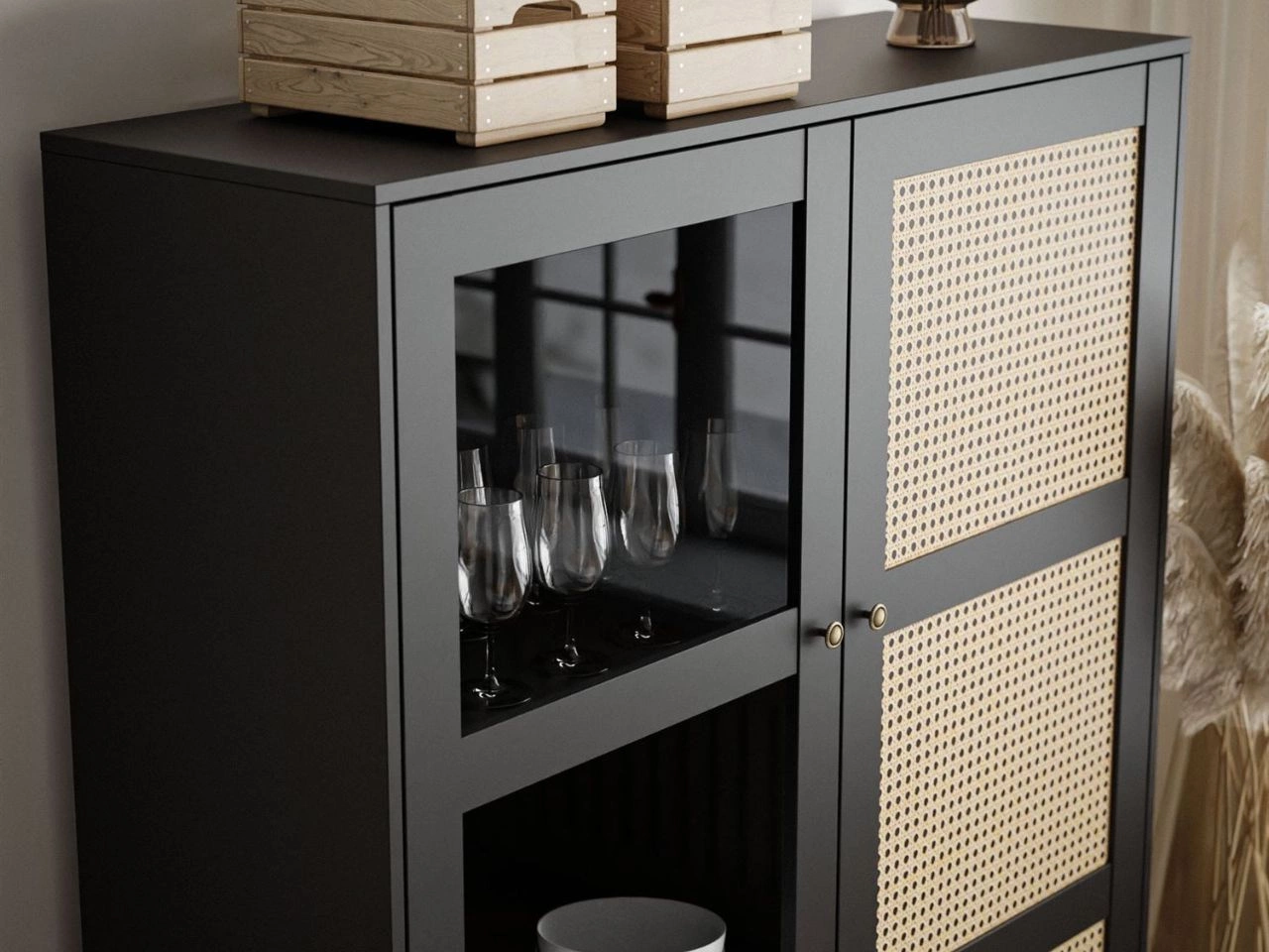 Standvitrine im Boho-Stil Verglaste Bellance, schwarz