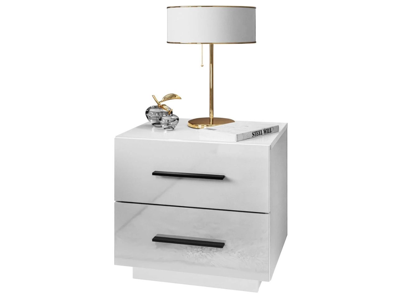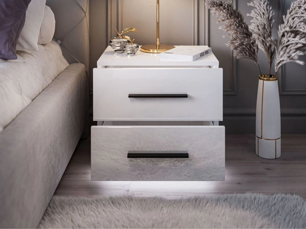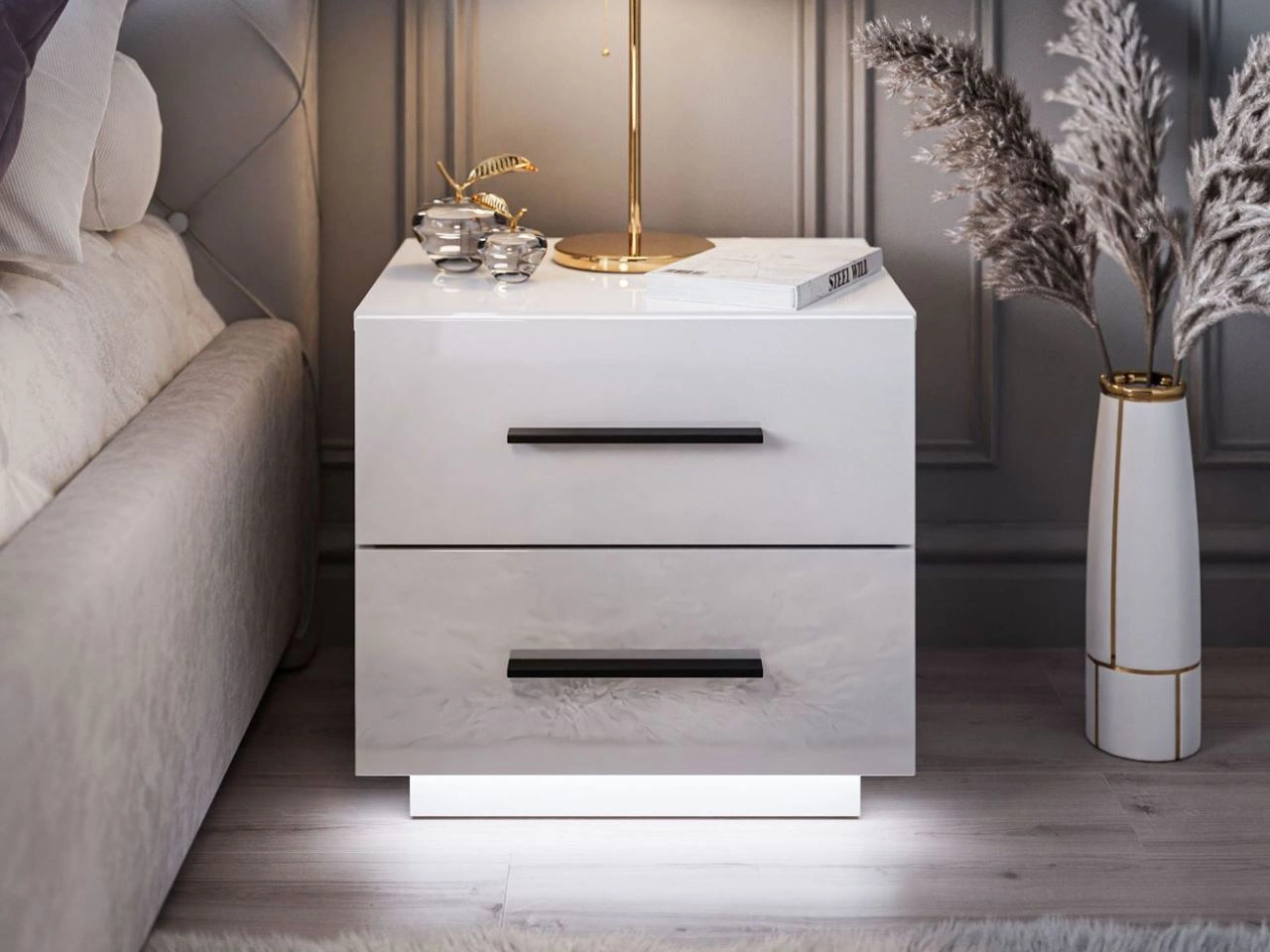 Nachttisch mit zwei Schubladen Nuveo Lux Weiß Hochglanz