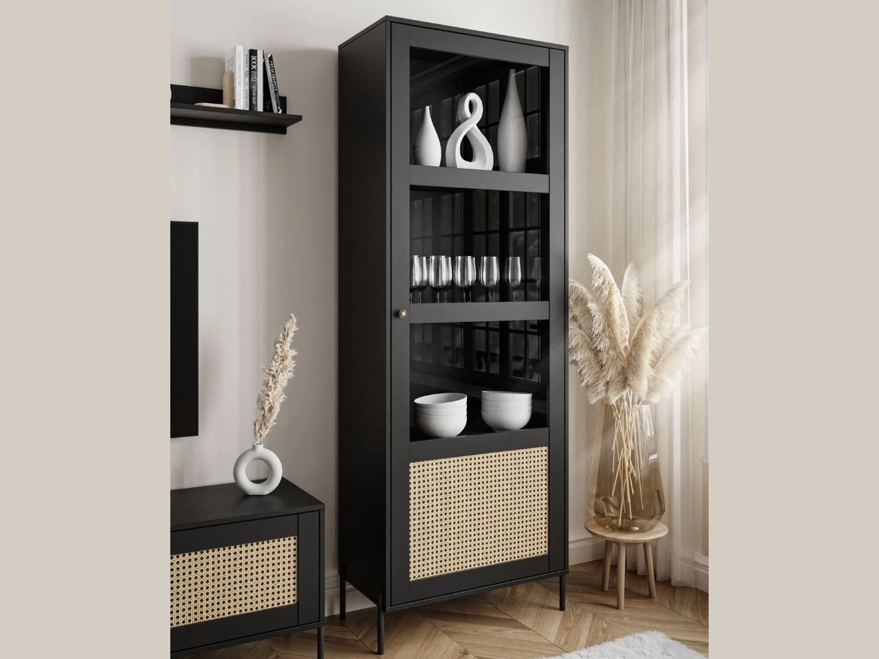 Standvitrine im Boho-Stil schmale Bellance Schwarz