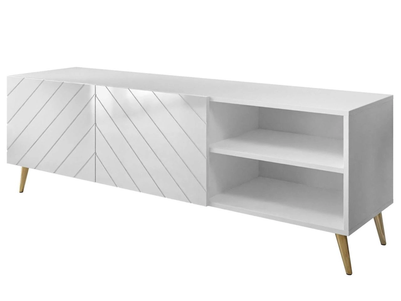TV-Schrank mit gefrästen Fronten und goldenen Metallbeinen Vionel Weiß glänzend