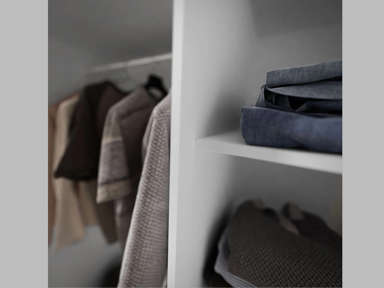• der Schrank verfügt über zehn geräumige Regale sowie zwei Bereiche mit Kleiderstange
