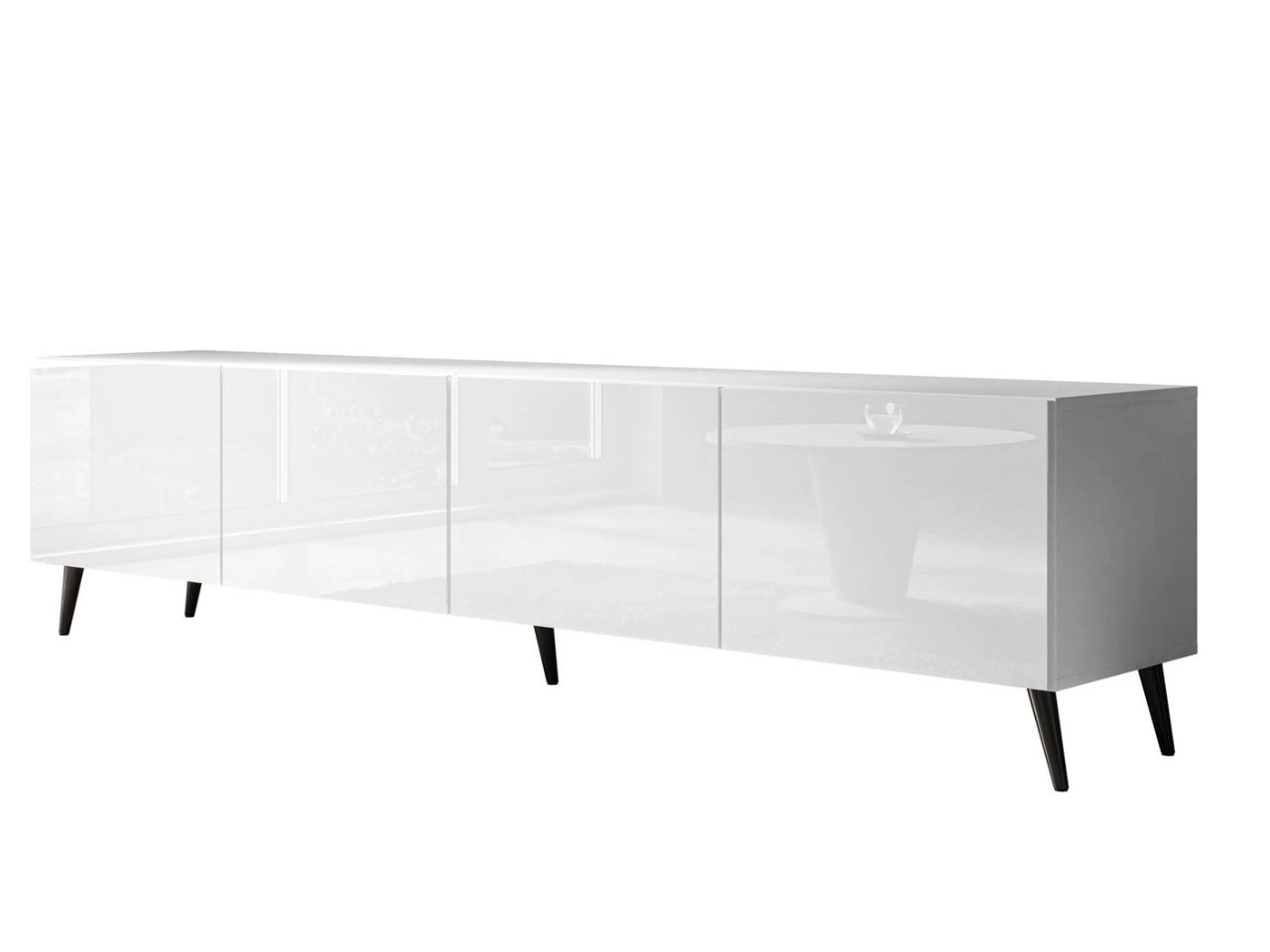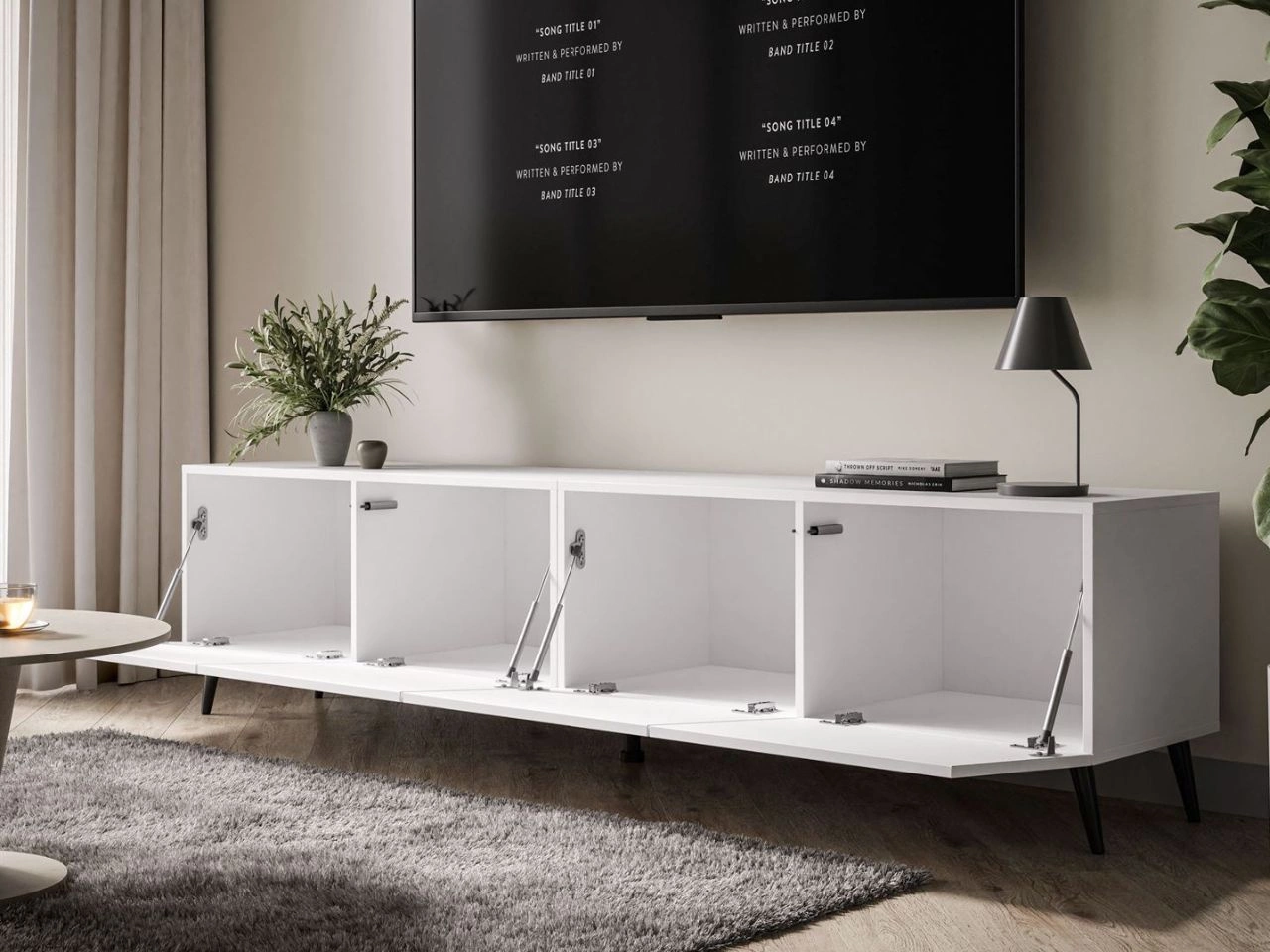 TV-Lowboard mit Türen auf Schwarzen Metallbeinen 200 cm Nodoo Weiß Hochglanz