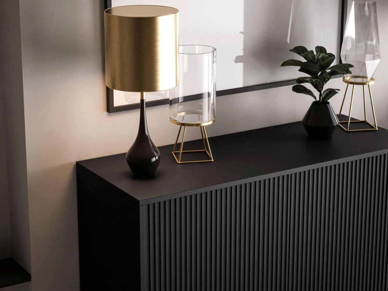 Die Orlean-Möbelkollektion ist eine hervorragende Wahl für alle, die praktische Möbel in zeitlosem Design suchen. In der Serie finden sich zwei Kommodengrößen – hoch und breit – sowie TV-Lowboards in zwei Breiten. Zur Wahl stehen außerdem die Korpusfarben Schwarz Matt und Kaschmir Matt. Auch bei den Füßen gibt es Optionen: schwarz oder goldfarben. Diese Konfigurationsmöglichkeiten erlauben die präzise Anpassung an den gewünschten Einrichtungsstil – so findet jeder das passende Modell.