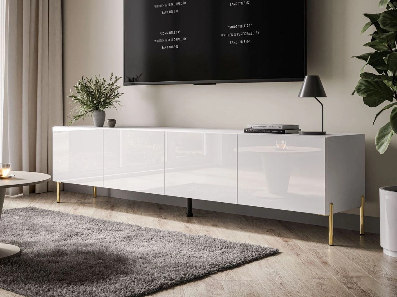 TV-Lowboard mit Türen auf Goldenen Metallbeinen 200 cm Nodoo Weiß Hochglanz