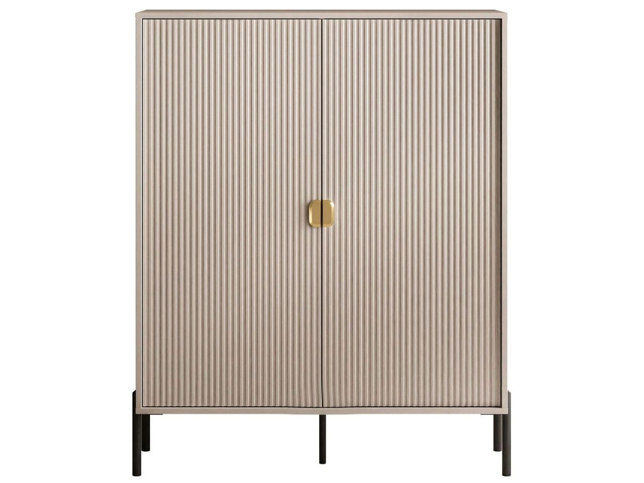 Hohe Kommode, zweitürig, mit goldfarbenen Griffen, Orlean Kaschmir matt