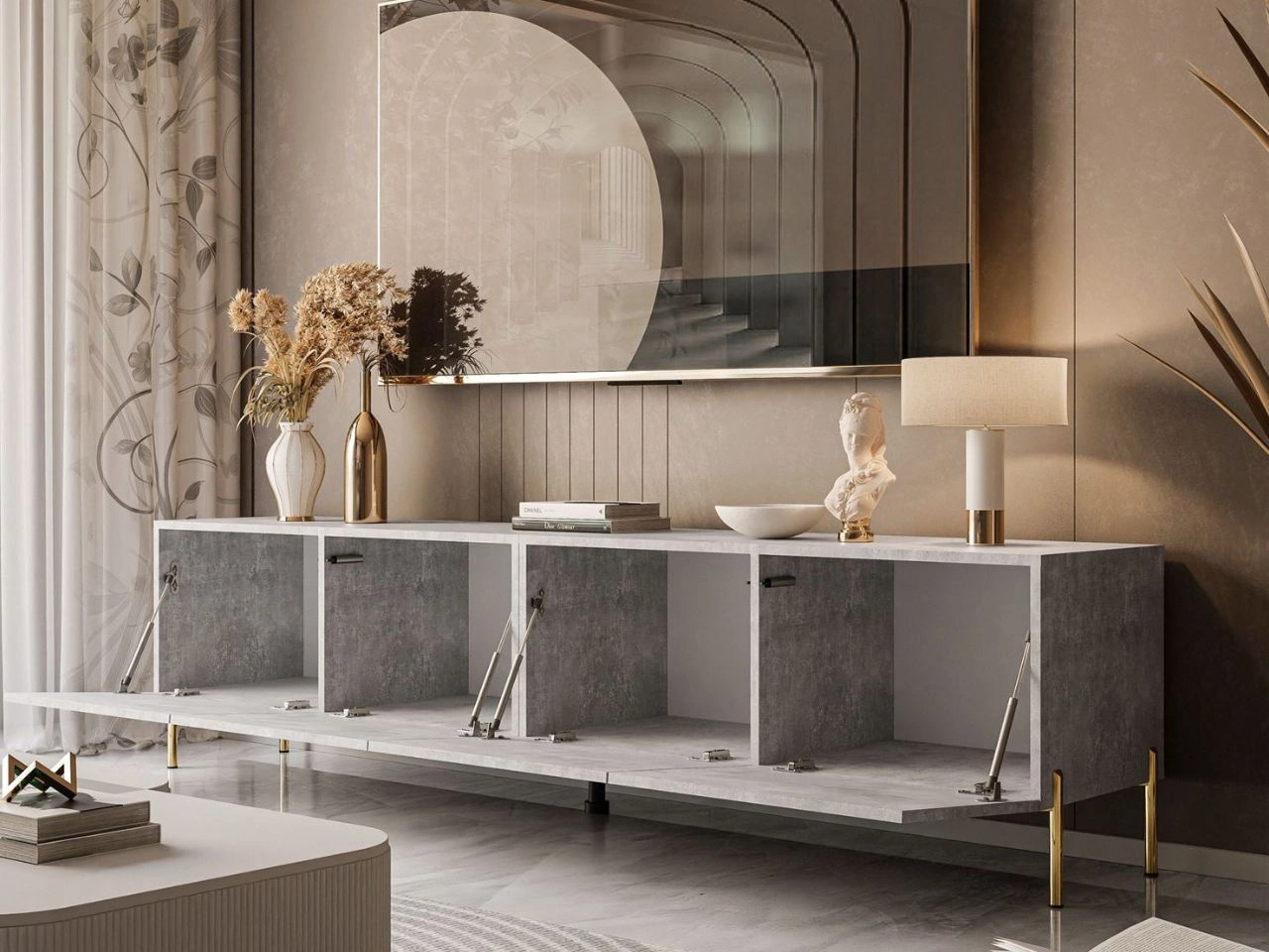TV-Lowboard mit Türen auf Goldenen Metallbeinen 200 cm Nodoo Beton