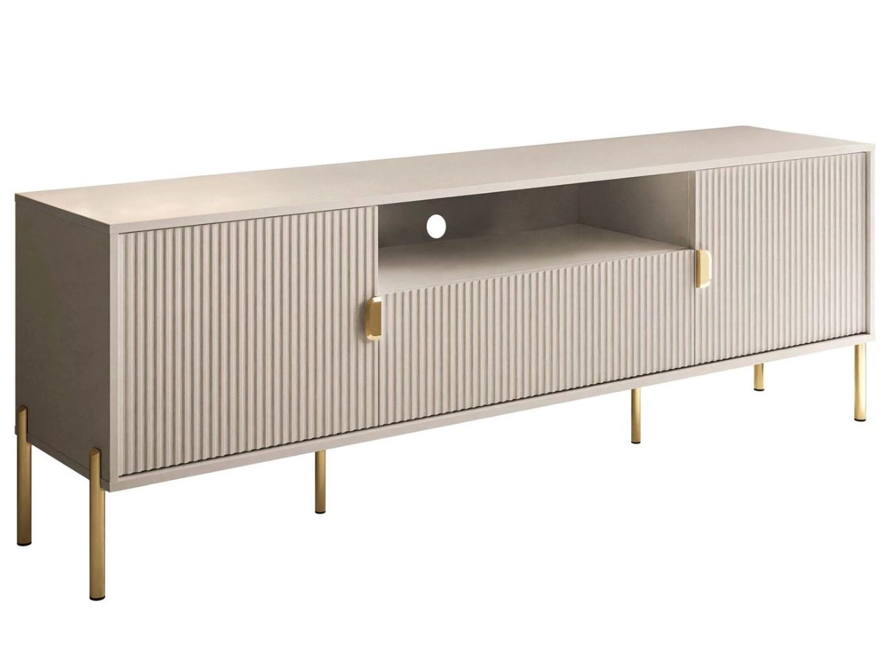 TV-Lowboard breit zweitürig mit Schublade und goldenen Metallfüßen Orlean Kaschmir Matt