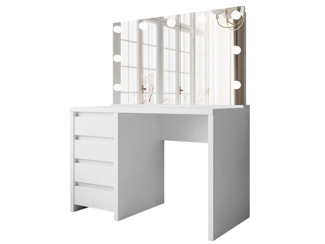 Schminktisch mit Spiegel, Schubladen und LED Nesso Weiß Matt