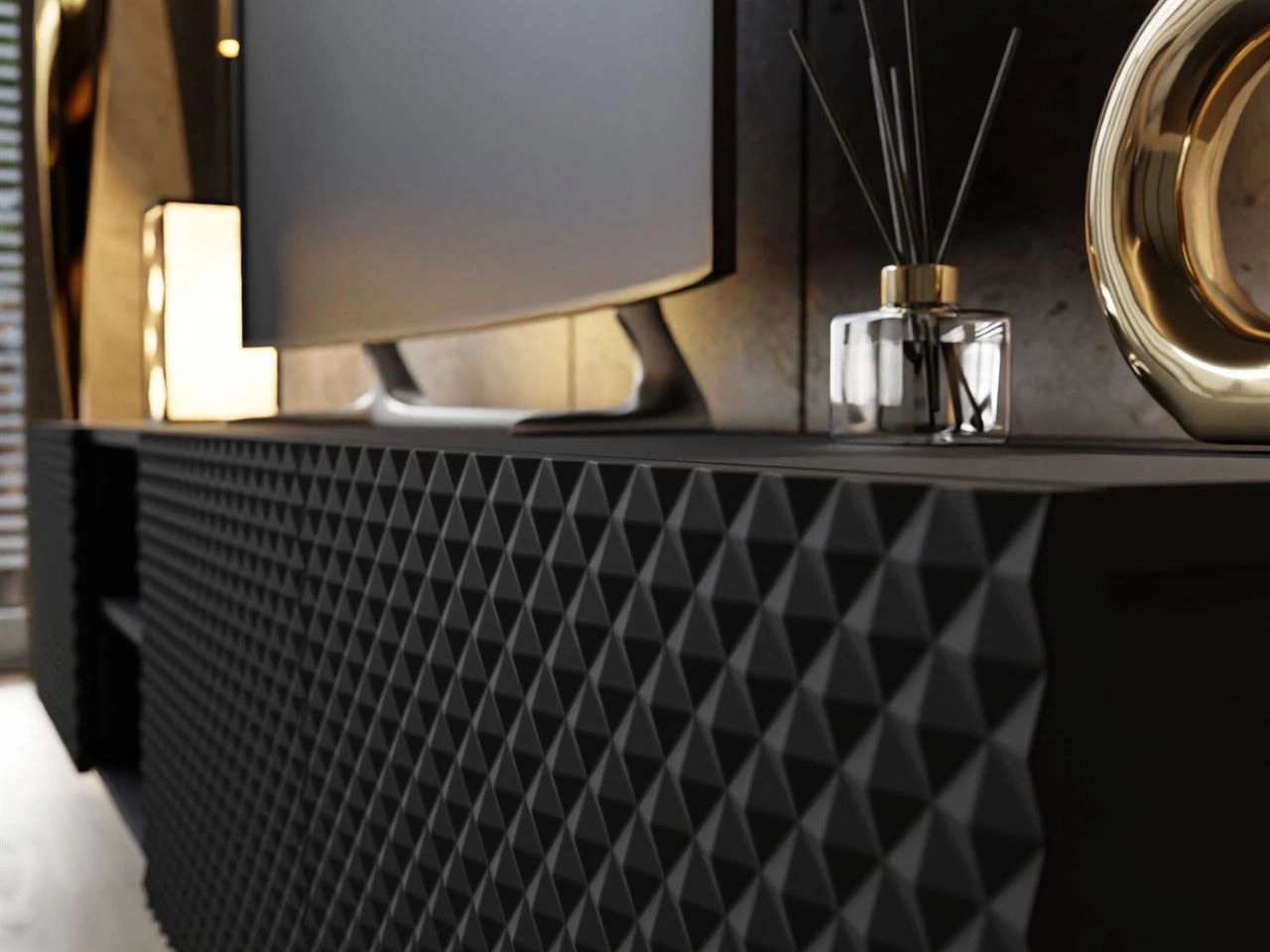 TV-Schrank mit verchromten Metallbeinen und gefrästen Fronten 3D Celiane Schwarz matt