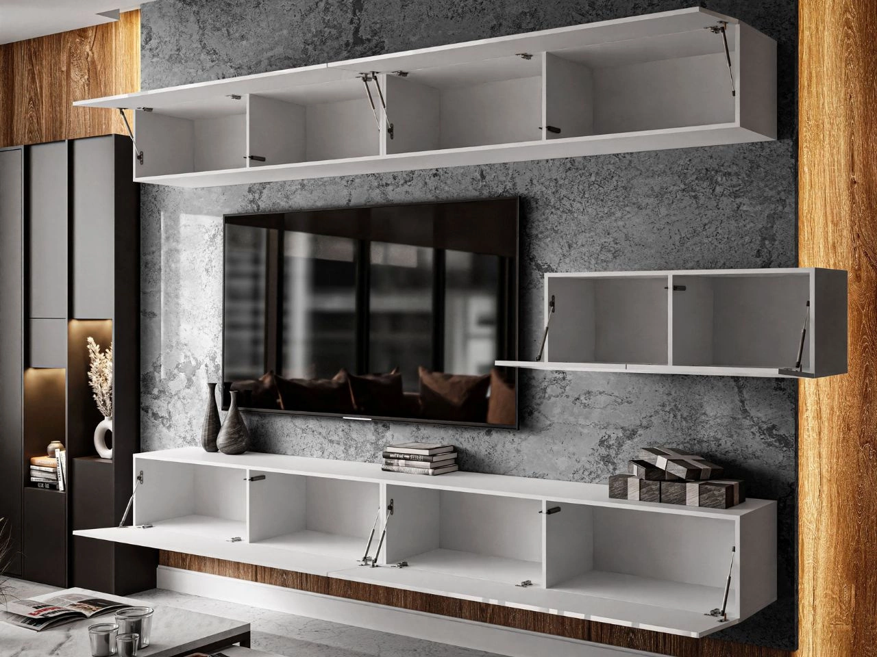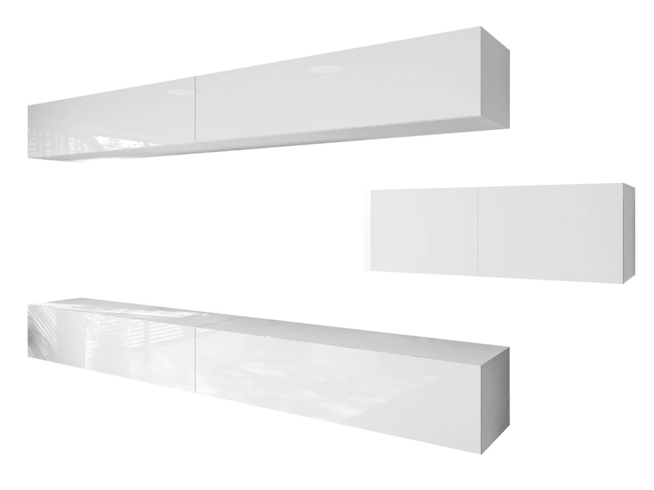 Hängende Wohnwand für das Wohnzimmer mit LED-Beleuchtung Nodoo Weiß Hochglanz