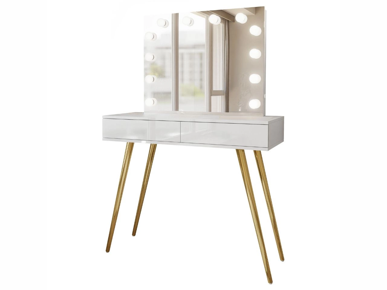 Schminktisch im Glamour-Stil mit Schubladen, Spiegel und LED-Beleuchtung Olivine Elite Weiß Hochglanz