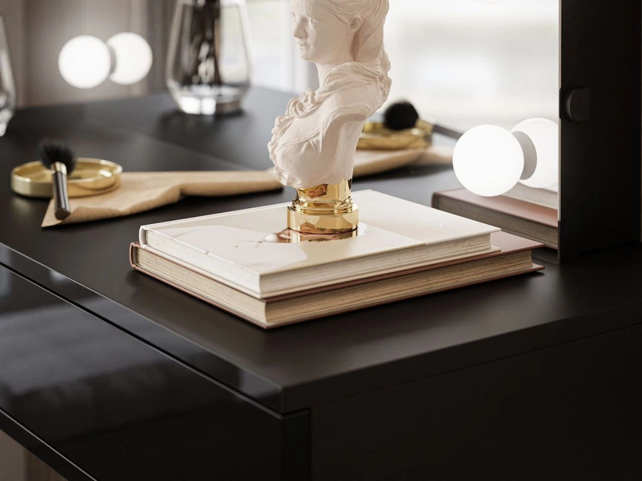 Schminktische sind zu einem festen Bestandteil des Schlafzimmers geworden – sie schaffen eine private Ecke, in der Sie Ihre tägliche Pflege und Ihr Make-up komfortabel erledigen. Genau diese Rolle erfüllt der Schminktisch Olivine Elite mit LED-Beleuchtung – eine elegante Verbindung aus stilvollem Design und praktischen Lösungen, entwickelt für maximalen Benutzerkomfort.
