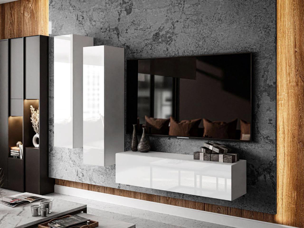 Hängende Wohnwand für das Wohnzimmer Nodoo Weiß Hochglanz