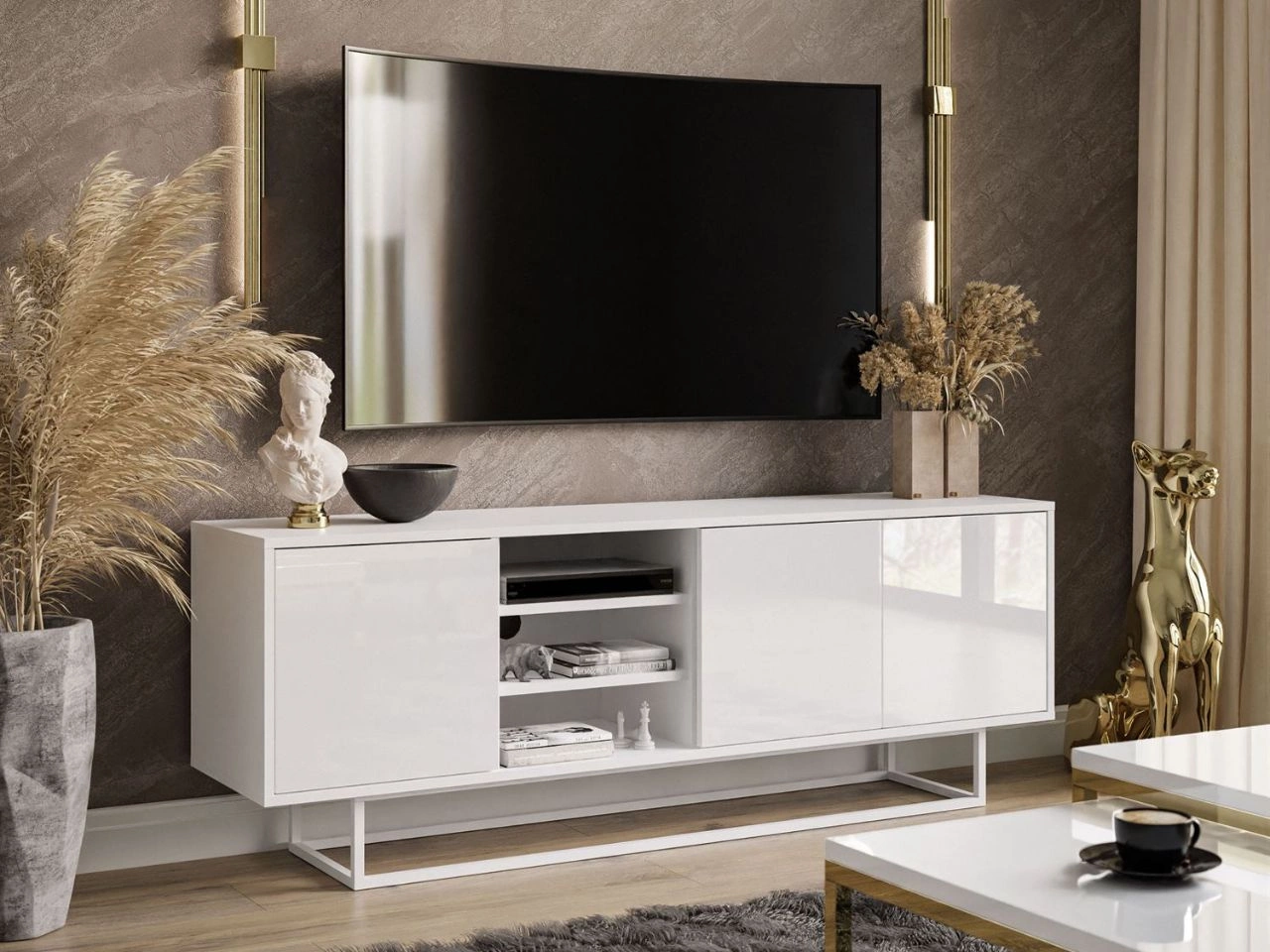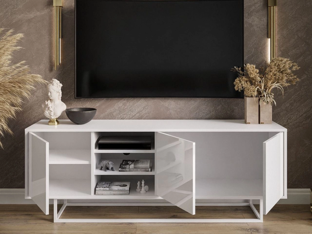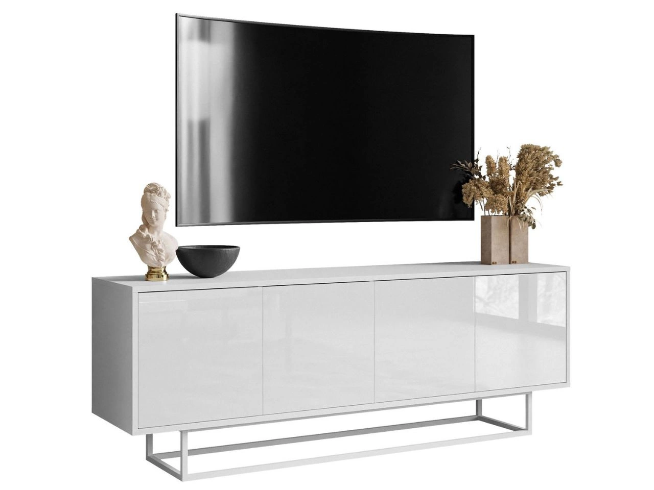 TV-Lowboard mit Türen auf weißem Gestell Vivance Hochglanz Weiß