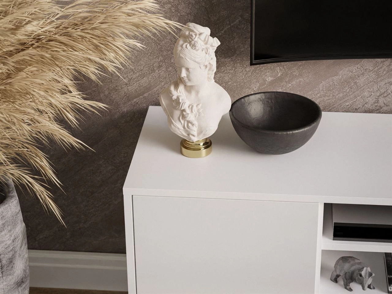 Das weiße, viertürige TV-Lowboard Vivance wurde so konzipiert, dass es sich an Ihre Vorlieben anpassen lässt. Was bedeutet das? Zum Möbel gehören vier Türfronten, die aber nicht alle montiert werden müssen. Die Konstruktion erlaubt es, eine offene Nische mit Einlegeböden im mittleren Bereich – links oder rechts – zu belassen. So erhalten Sie wahlweise ein vier- oder dreitüriges Lowboard. Das Möbel verfügt über zwei kleinere und eine größere Nische sowie insgesamt drei Einlegeböden. Die Türen öffnen sich grifflos per Push-to-Open – drücken und öffnen.