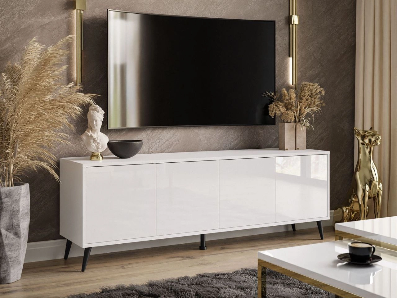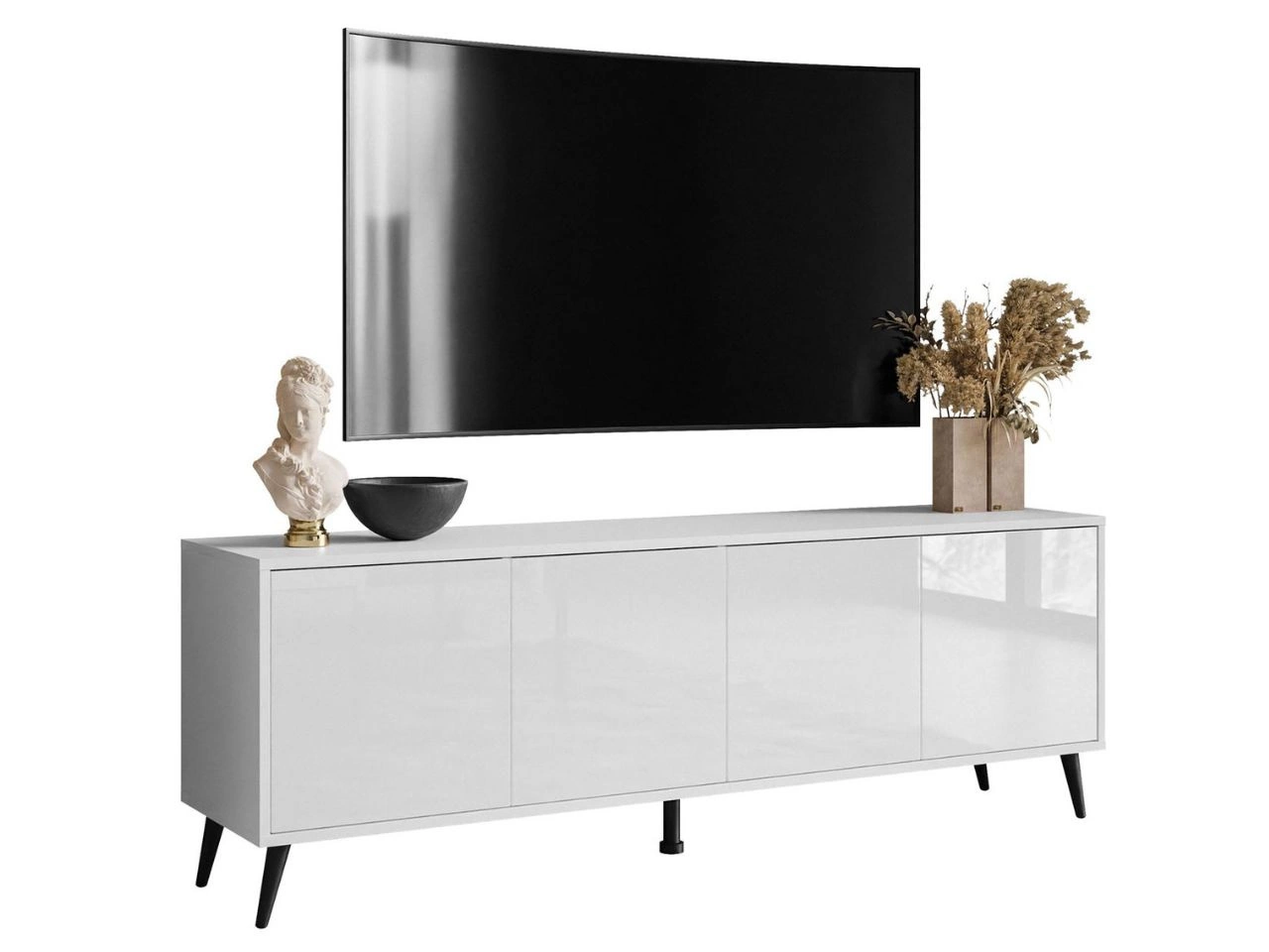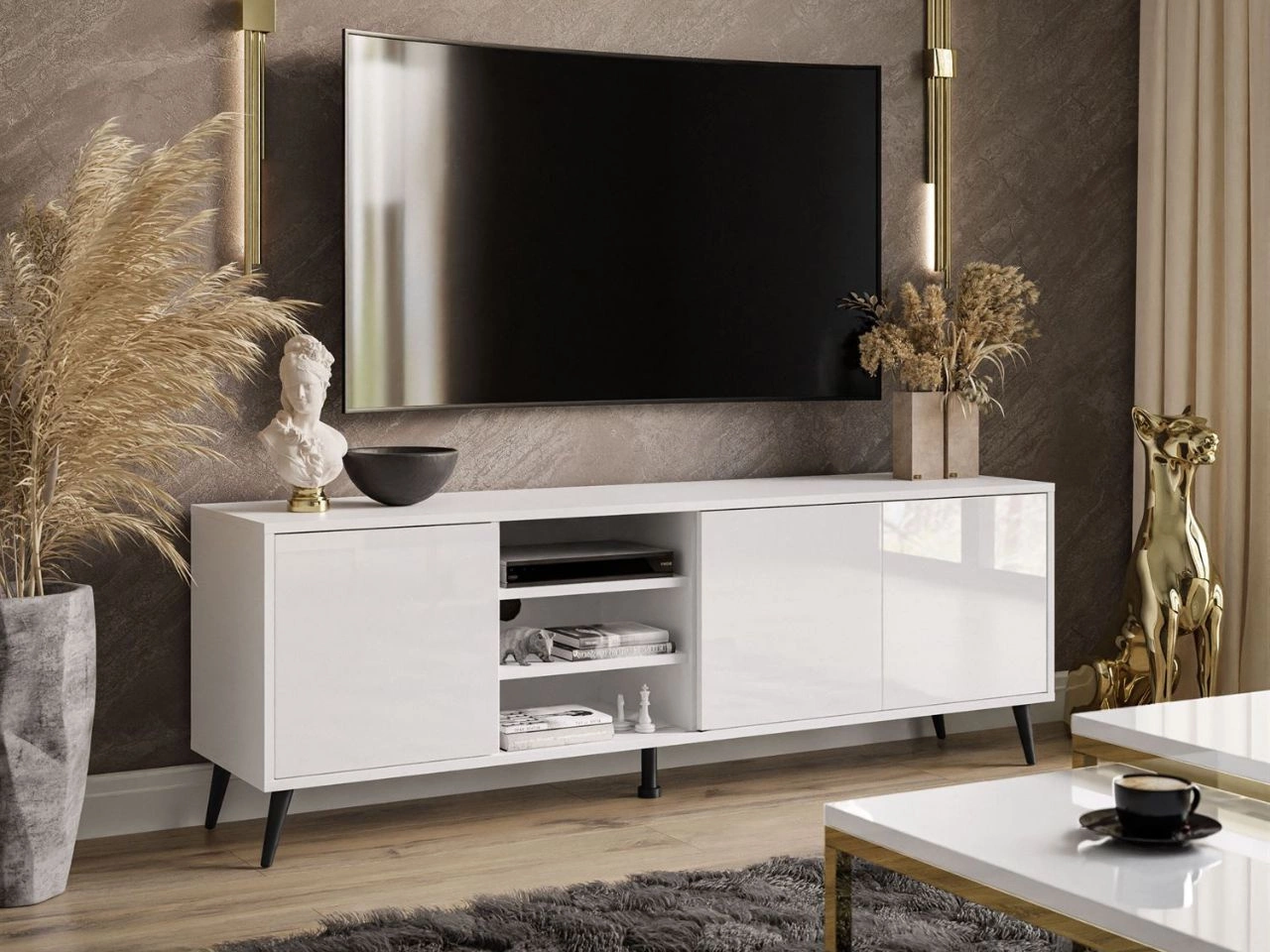 TV-Lowboard mit Türen schwarze Beine Vivance Weiß Hochglanz