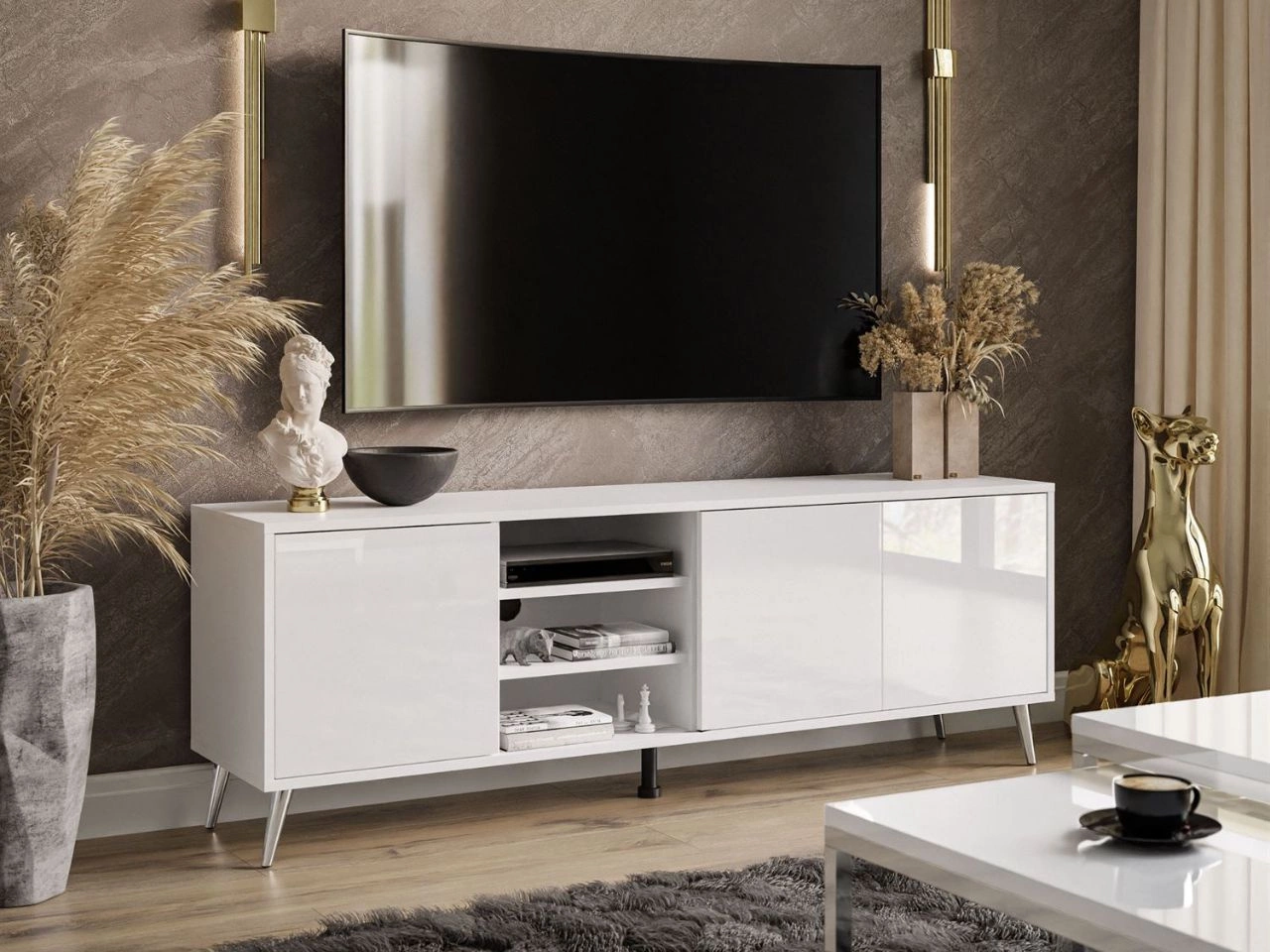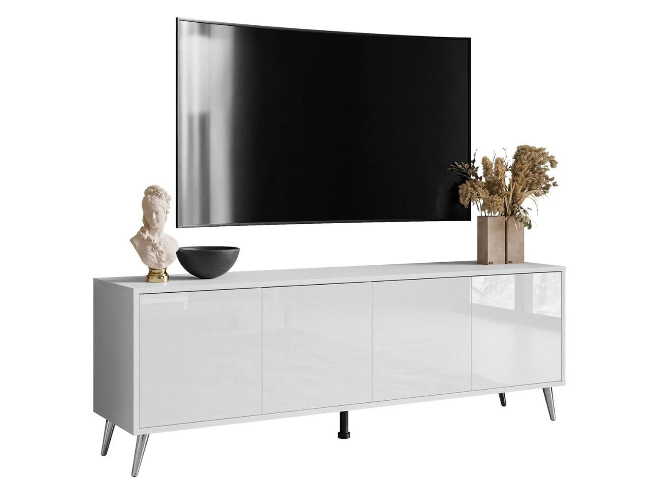 TV-Lowboard mit Türen silberne Beine Vivance Weiß Hochglanz