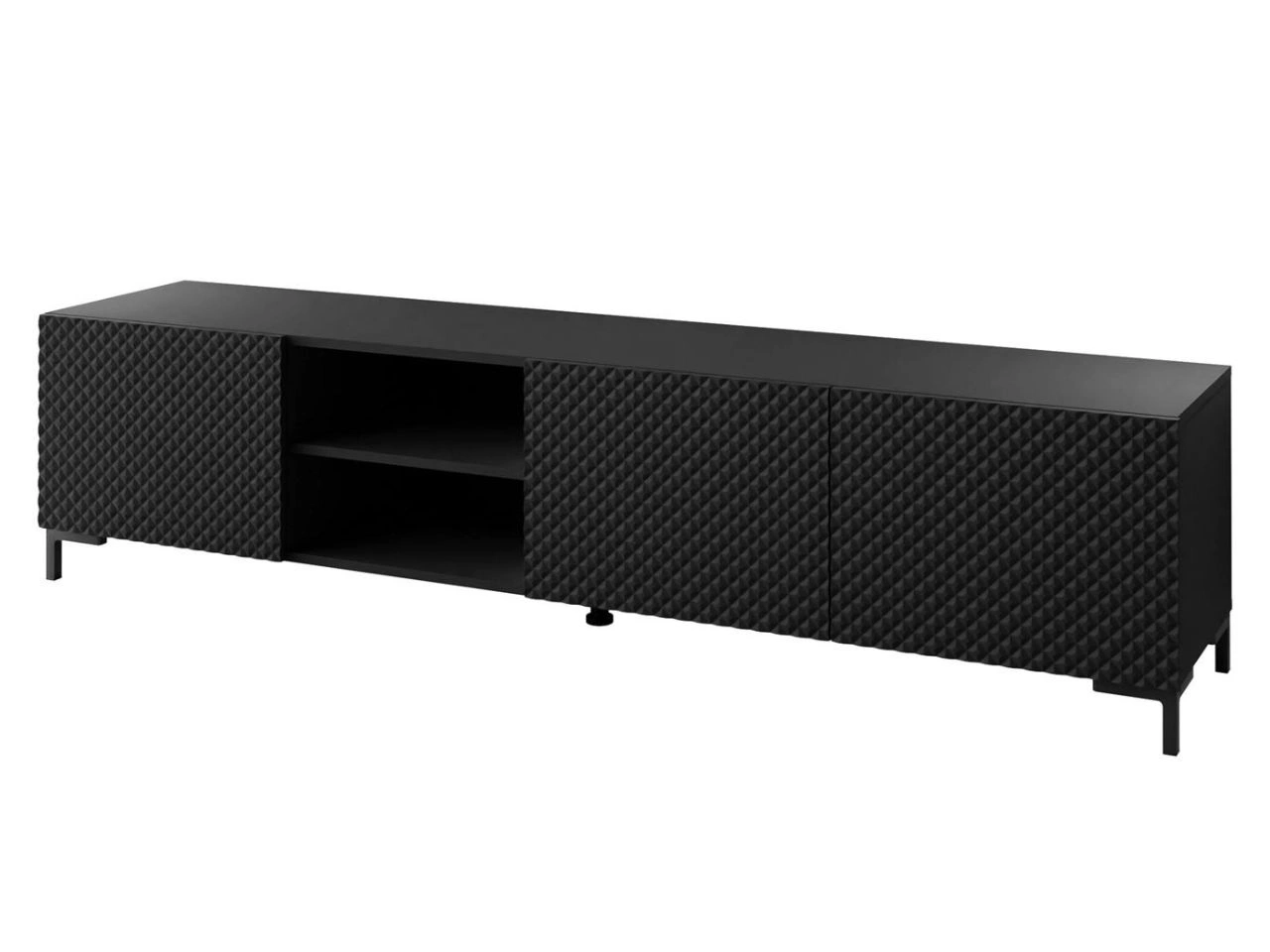 TV-Schrank mit schwarzen Kunststoffbeinen und 3D-gefrästen Fronten Celiane Schwarz matt