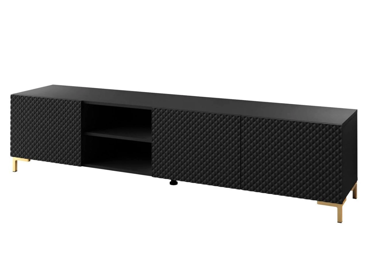 TV-Schrank mit goldenen Kunststoffbeinen und 3D-gefrästen Fronten Celiane Schwarz matt