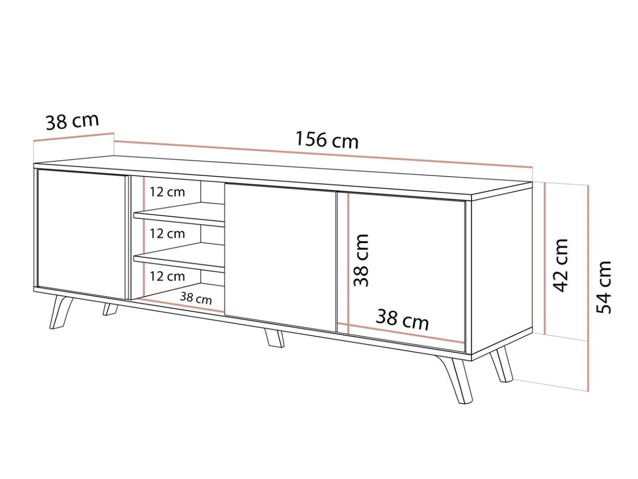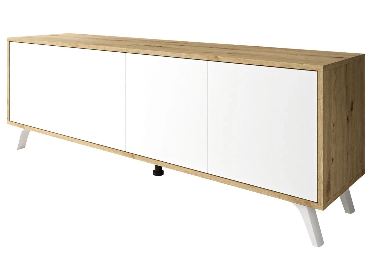 TV-Lowboard mit Türen und weißen Beinen Vivance Weiß & Eiche Artisan