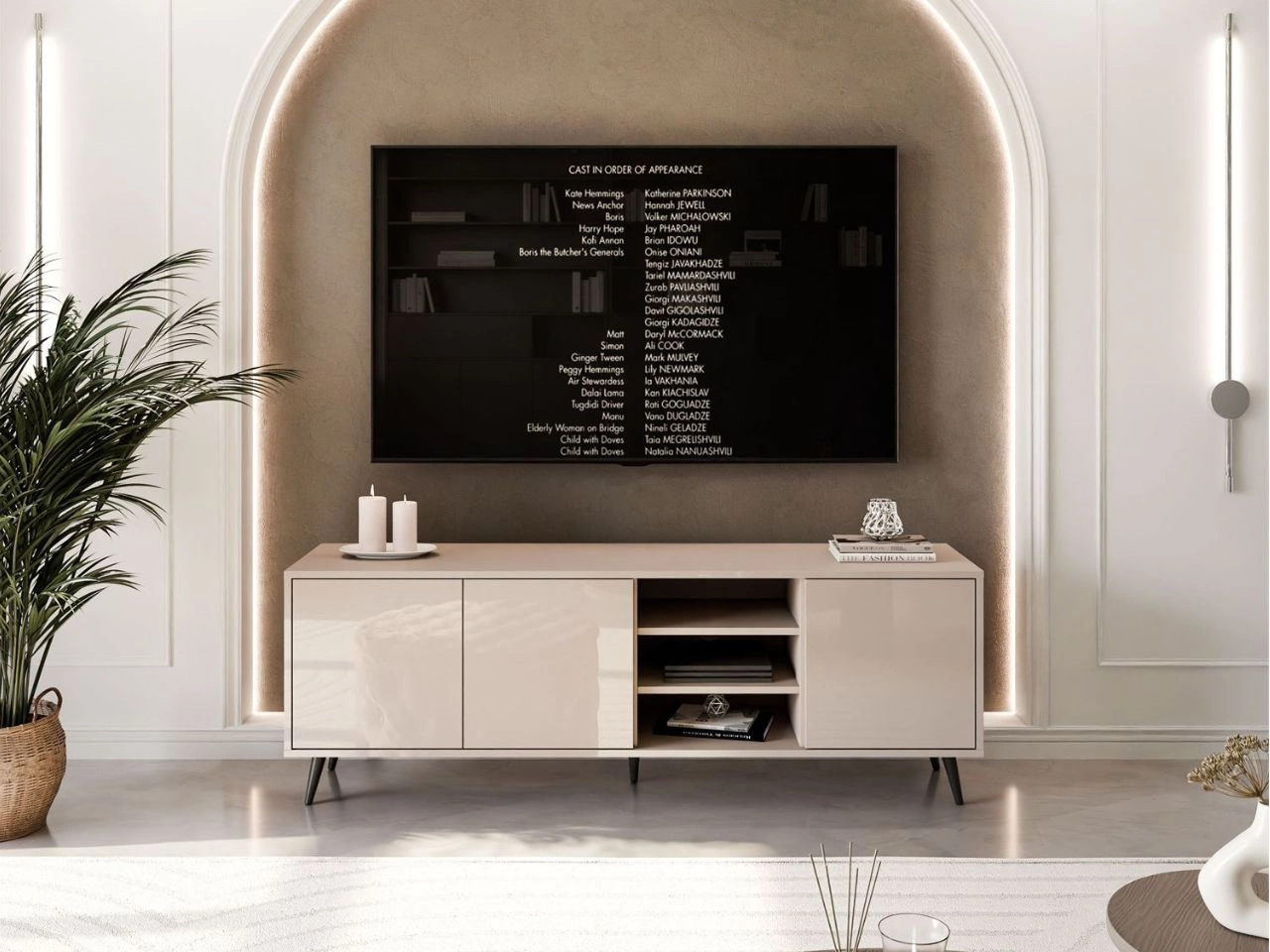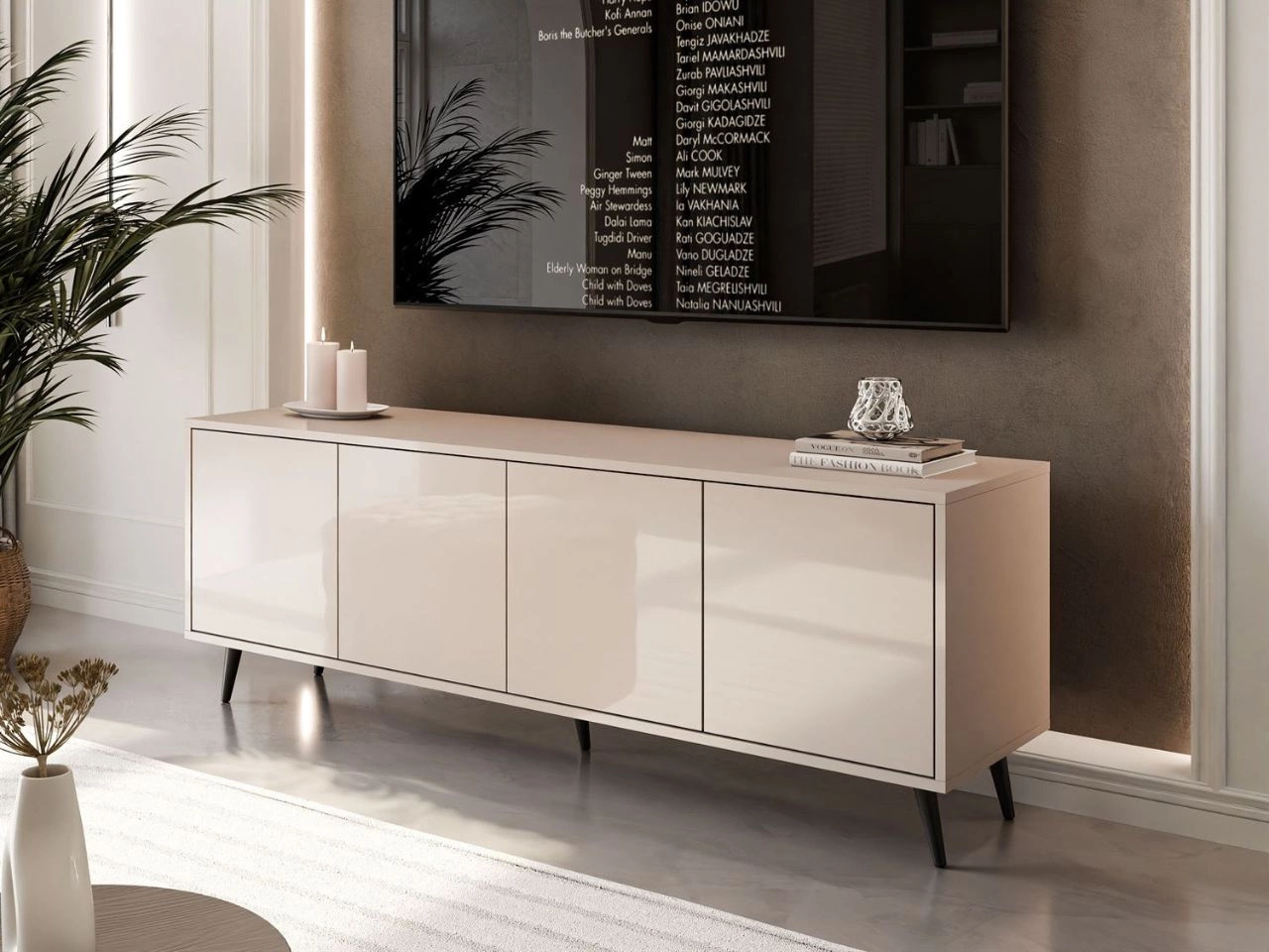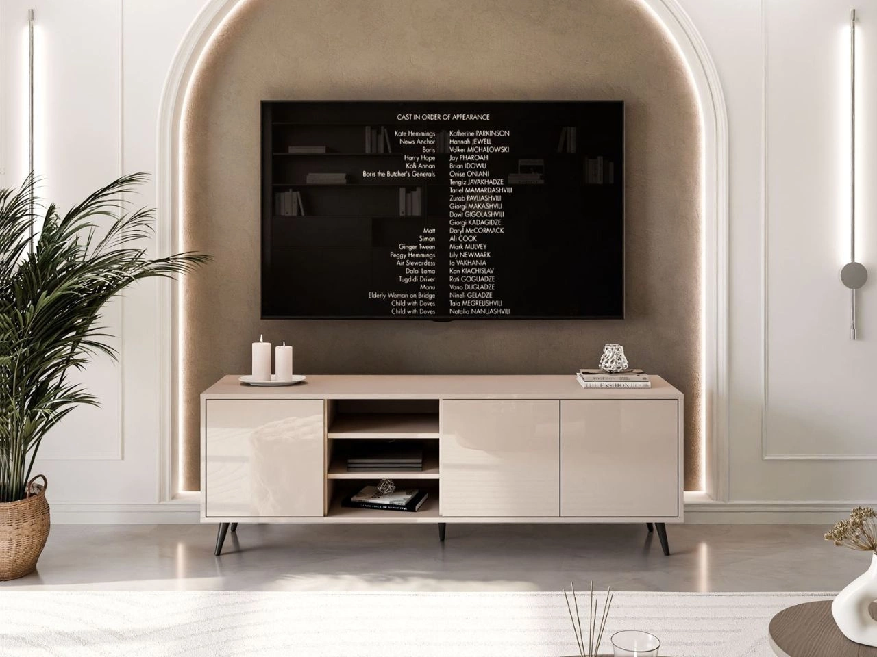 TV-Lowboard mit Türen schwarze Beine Vivance Kaschmir Hochglanz